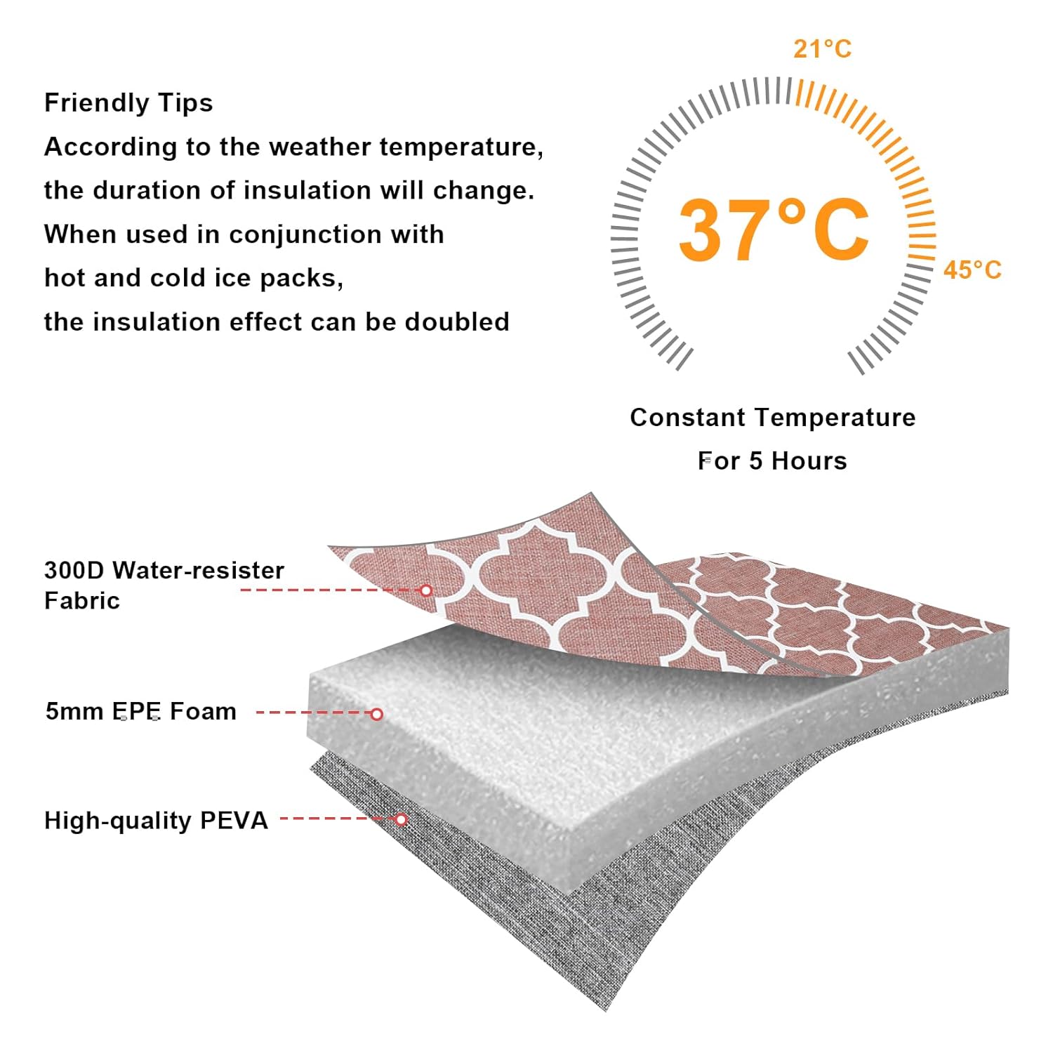 • KEEP COOL OR WARM EFFECTLLY: Insulated lining can keep bottles cool or warm, will help your food or drinks keep the optimal temperature.