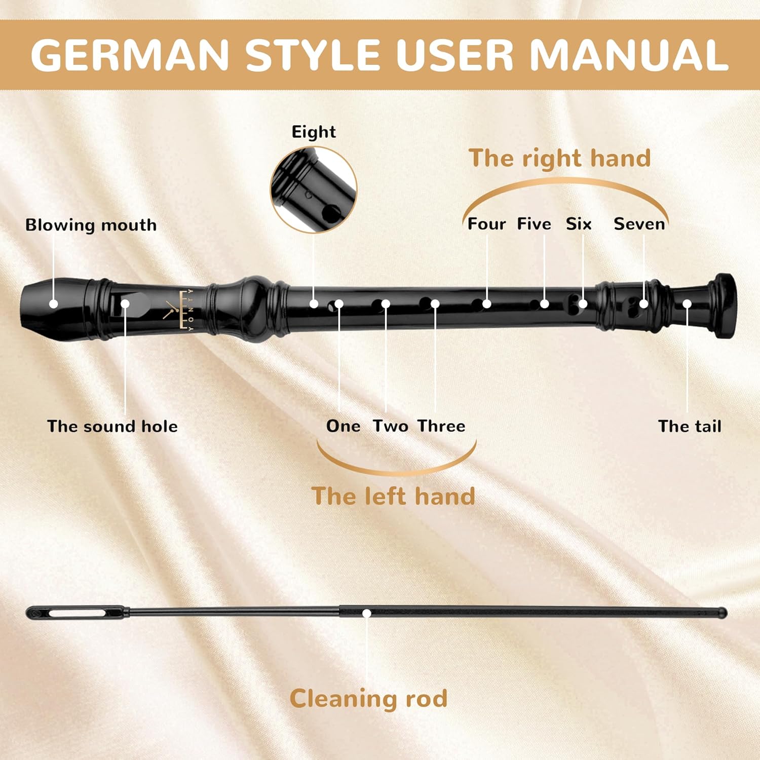 - 【Special Design】The German style soprano recorder adopts a 3-piece structure, and the position of the C hole can be adjusted according to the size of the hand. The finely polished mouthpiece can fit your mouth very well, easy to control and accurate tone. With the simple beginner tutorial, everyone can play the simplest songs very quickly. Recorders can help beginners improve their listening and motor skills in music.