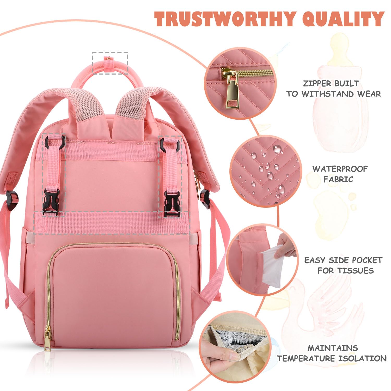 Baby Diaper Bag Backpack, Travel Diaper Bags for Baby Girl Boy Large Capacity Baby Bag Backpack for Women Light Pink