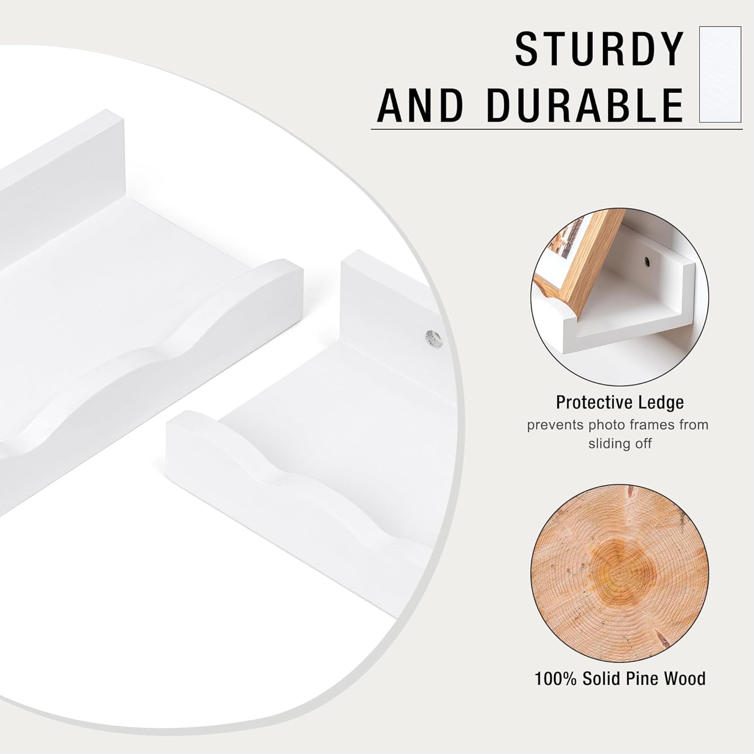 Fun Memories Picture Ledge Shelf for Wall, 16 inch Pine Wood Nursery Book Shelves Set of 4- Wall Book Shelves for Kids Room, Home Decor - Kitchen Spice-White