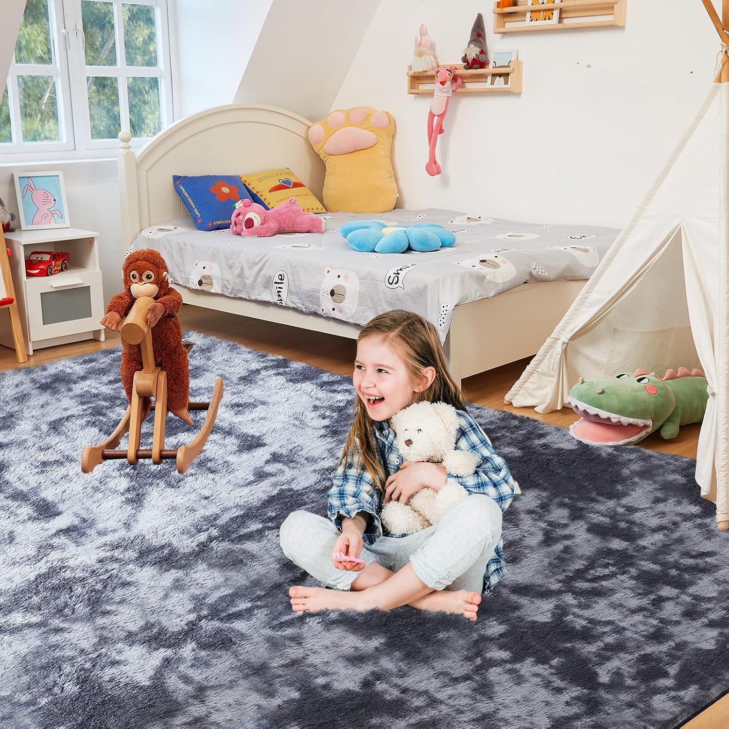 Ultra Soft Rug for Living Room, 4X6 Fluffy Shag Area Rug for Bedroom, Modern Shaggy Carpets Fuzzy Rug for Teens Dorm Nursery Home Decor Aesthetic, Upgrade Anti-Skid Durable, Tie Dye Black and Grey