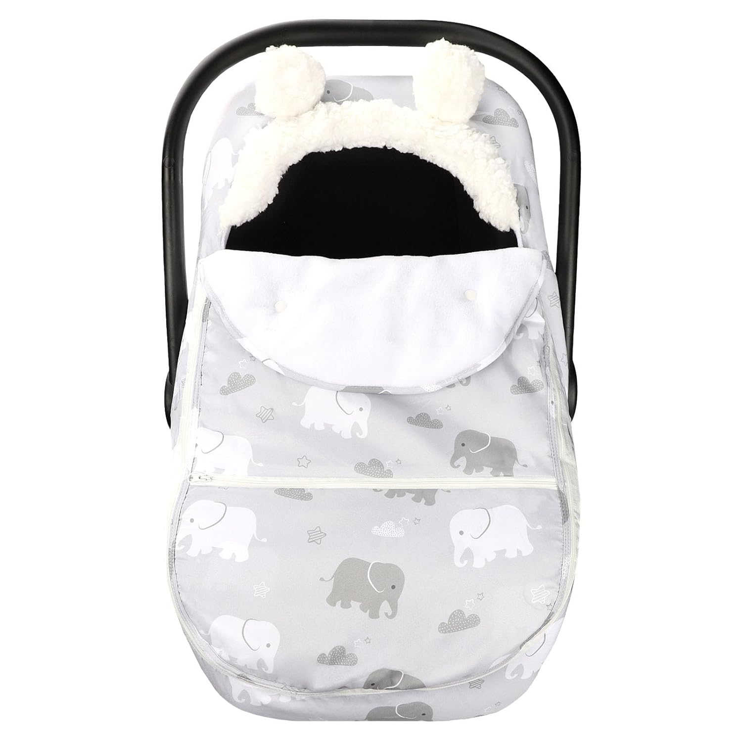 Carseat Cover Boys, Winter Cozy & Warm Cover, Elephant Baby Car Seat Cover, Infant Car Seat Canopy, Ultra-Soft Breathable Protect Baby from Cold Wind, Zipped Removable Design