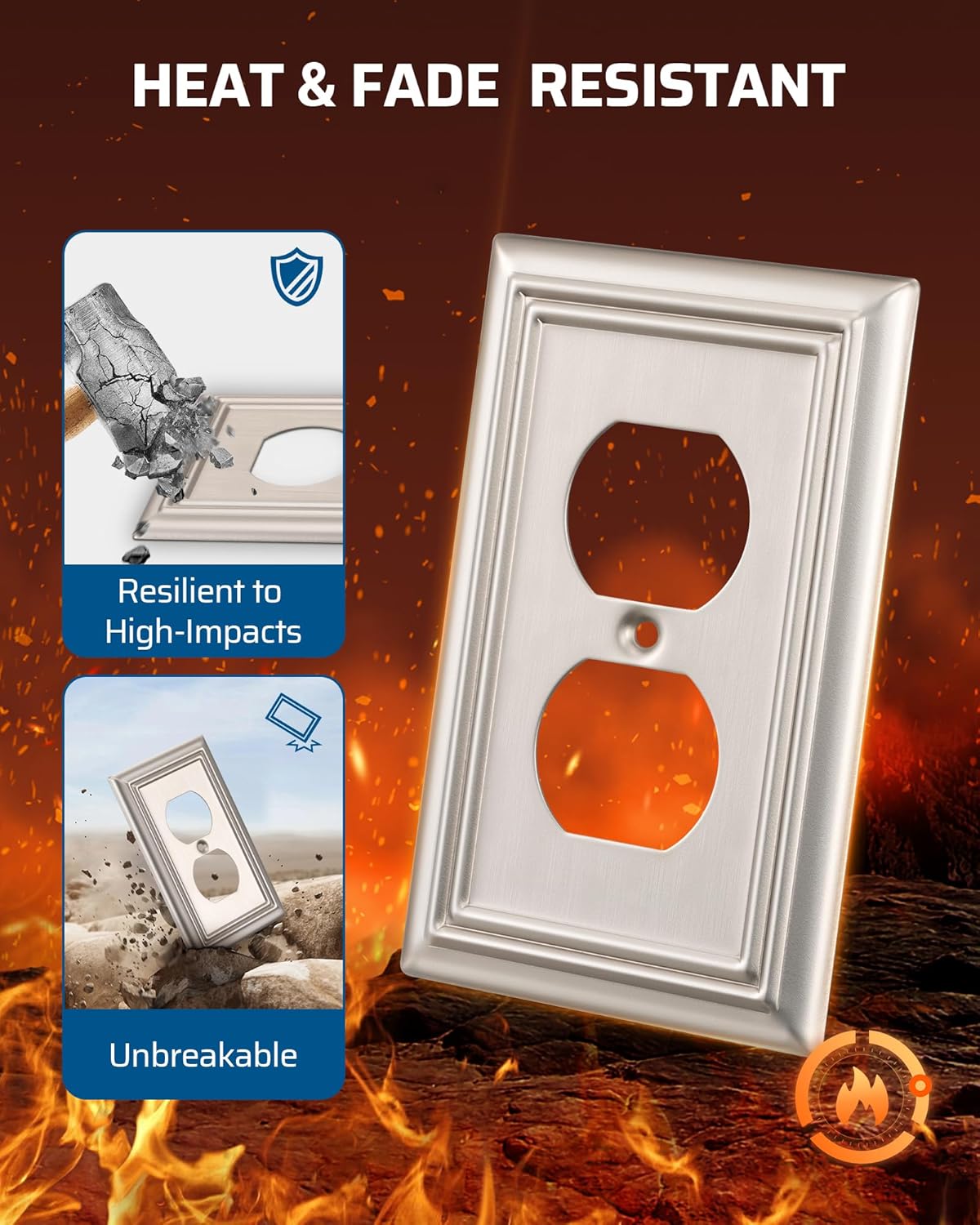 - [Simple and Classic] Brushed nickel finish with a fine, even brushed texture; whether a modern or traditional style, our wall plates suit any decor theme, ideal for the living rooms, bedrooms, bathrooms, and kitchens