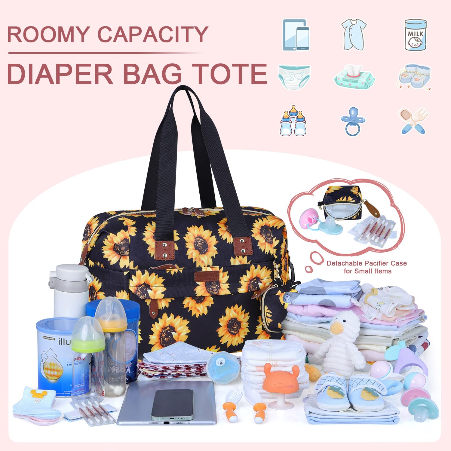 Diaper Bag Tote - Diaper Baby Bags with Pacifier Case, Shoulder Straps, Stroller Clips, Waterproof Large Mommy Bag Maternity Bag Travel Baby Bag for Mom and Dad, Sunflower
