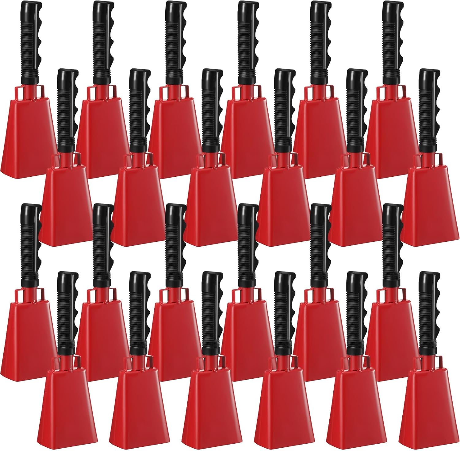 24 Pcs Cow Bell Cheering Bell Cow Bells Noise Makers for Sporting Events Football Cowbell with Handle Loud Musical Instrument for Sports School Classroom Alarm(red,9 '')