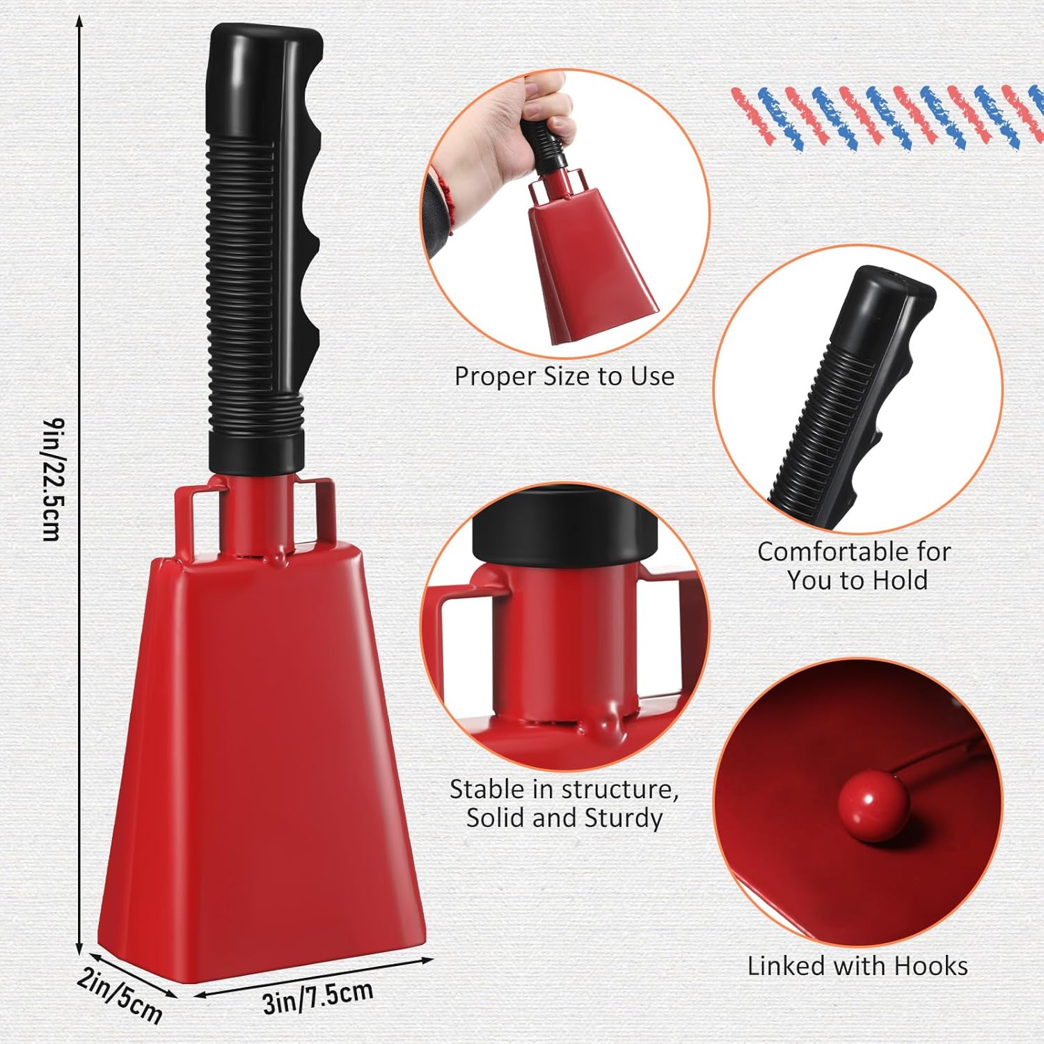 - Effective Noisemaker: our cowbell instrument is designed to produce a distinct sound that gets attentions instantly, suitable as a football cowbell or for other sports events; Whether you're rooting for your team or alerting others about a potential hazard, our bell ensures your message comes across loud and clear