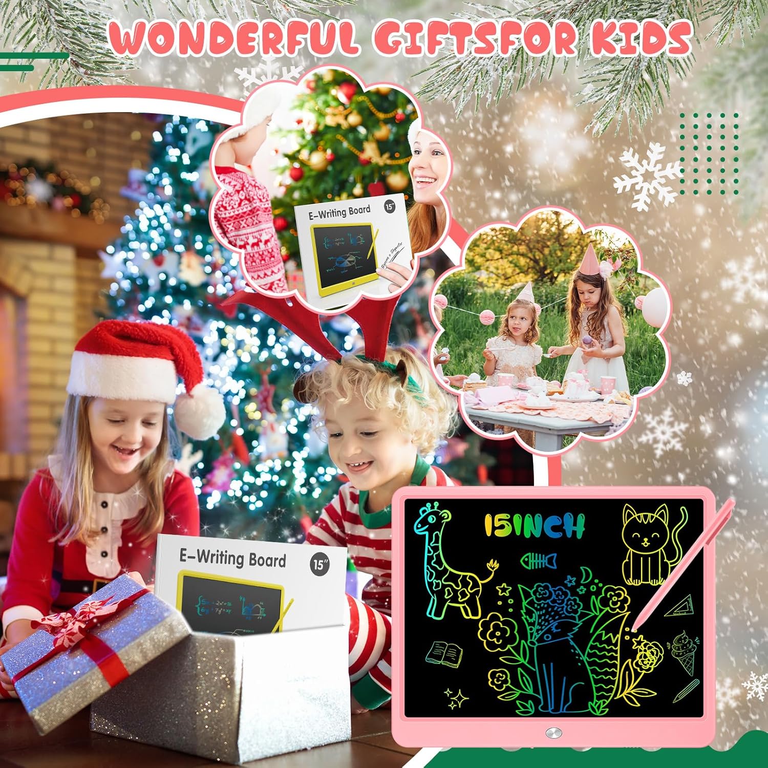 Decute Kids Toys LCD Writing Tablet with Stylus, 15 Inch Erasable Toddlers Doodle Board, Reusable Drawing Pad for Kids, Educational Christmas Birthday Gift for 3 4 5 6 7 8 Girls Boys Toddler Pink