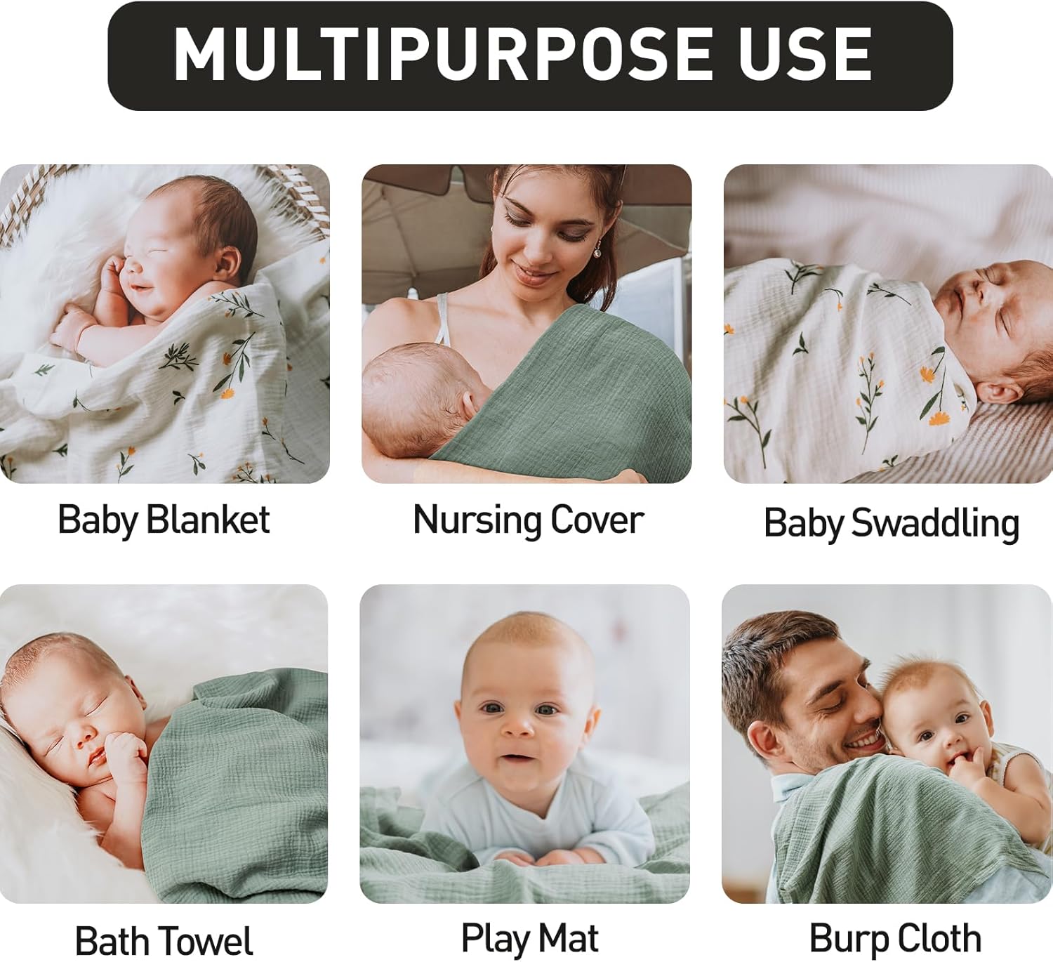- MULTIPURPOSE USAGE: Our baby blanket can also be used as a receiving blanket, cuddle blanket, mini crib sheet, nursing cover, stroller sunshade, burp cloth, car seat cover, play mat, changing pad and so on. Comes in a convenient 2 pack with neutral colors. Gllquen baby muslin swaddle wraps suit both baby boys and girls, easily meet all your daily needs