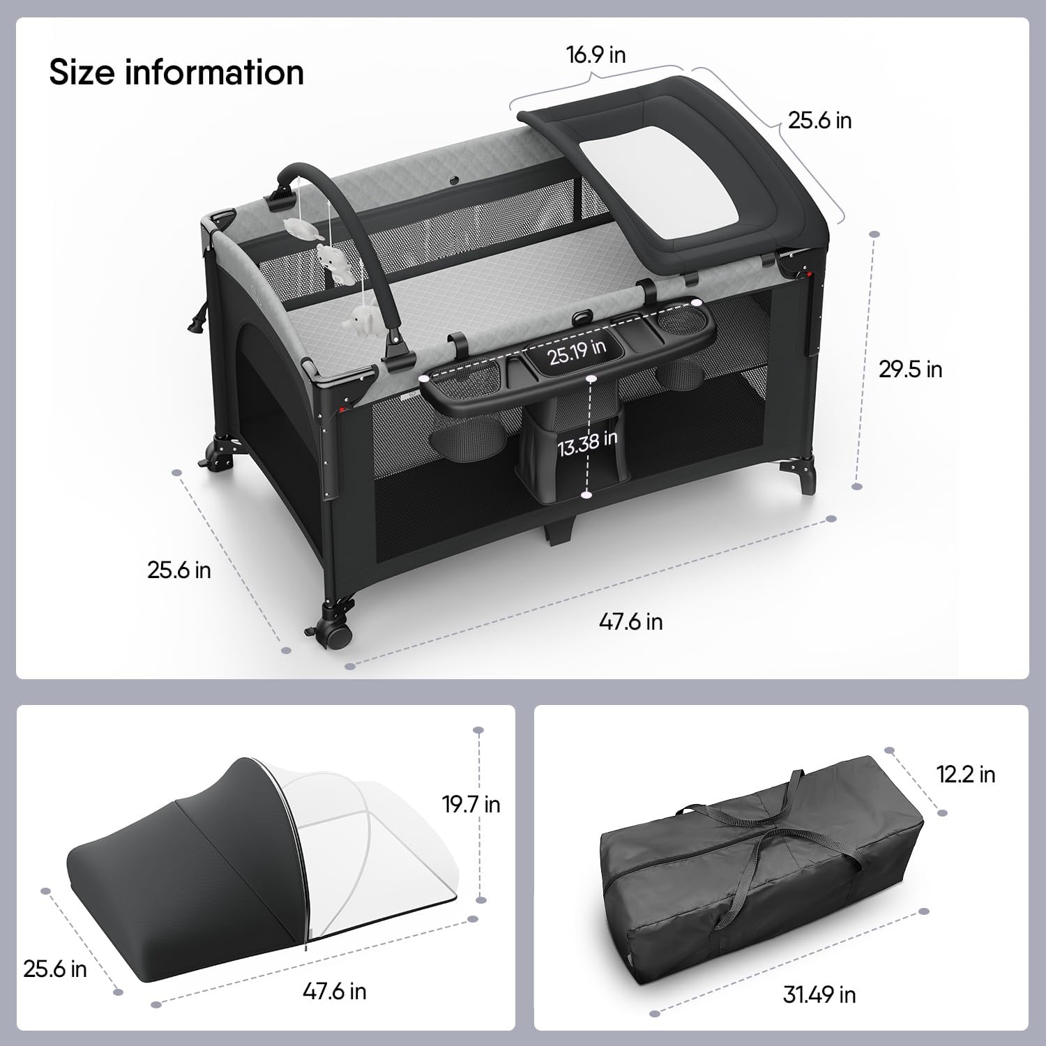 - Secure and Stable Structure: We have enhanced the bottom locking mechanism, making assembly a breeze while boosting the safety and stability of the product so that babies can rest and play with peace of mind on the bed
