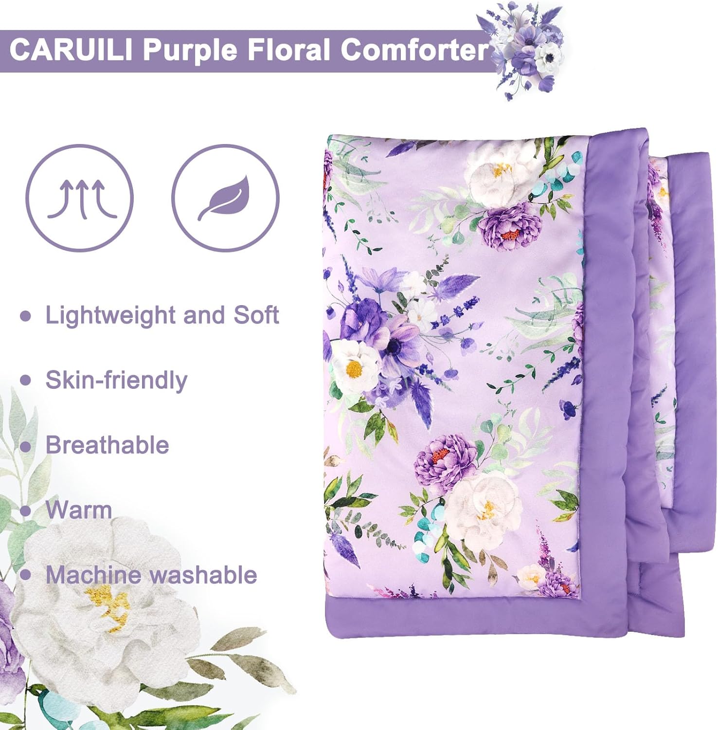 Crib Bedding Set for Girls, Purple Baby Crib Bedding Set 4 Piece, Baby Girl Nursery Bedding Set Including Comforter, Fitted Crib Sheet, Crib Skirt, Diaper Stacker, Floral
