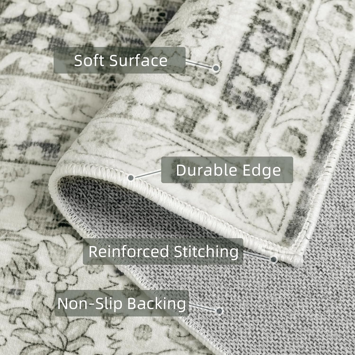 Deerly Washable Rug 5x7 Area Rugs for Living Room, Non Slip Large Rug for Bedroom Dining Room, Low-Pile Kid & Pet Friendly Distressed Carpet Print Floor(Cream)