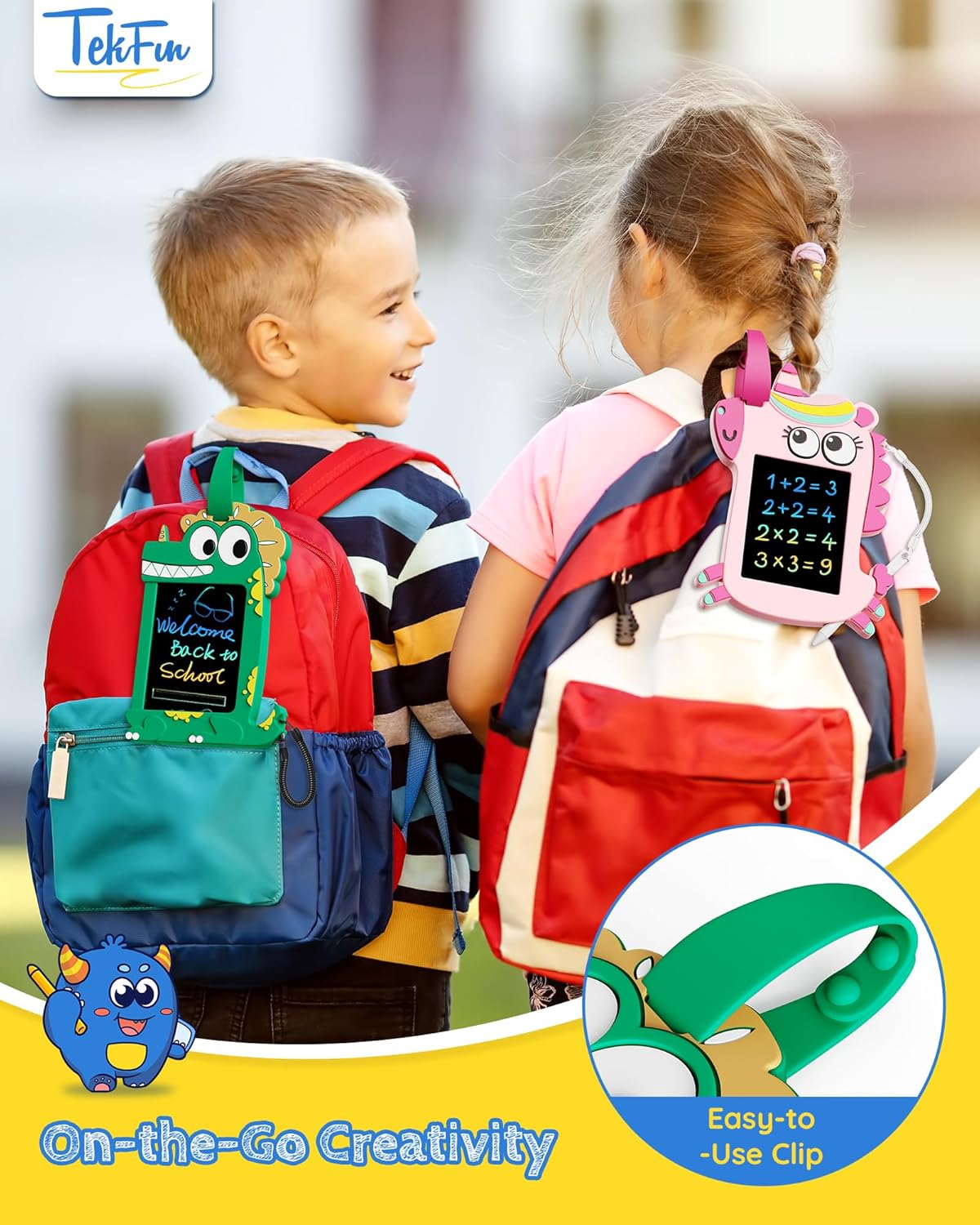 - Unique Shape- TEKFUN Sketchpad is a durable and safe Doodle board made of high-quality silicone material with a unique unicorn/dinosaur cartoon design safer pen placement, and adopts unique LCD screen technology. Not only does this mean the drawing tablet can be drawn on, erased and reused over 100,000 times, kids can also write using anything at hand - including a stylus or even a fingernail. This has also become one of the reasons why children can't put it down.