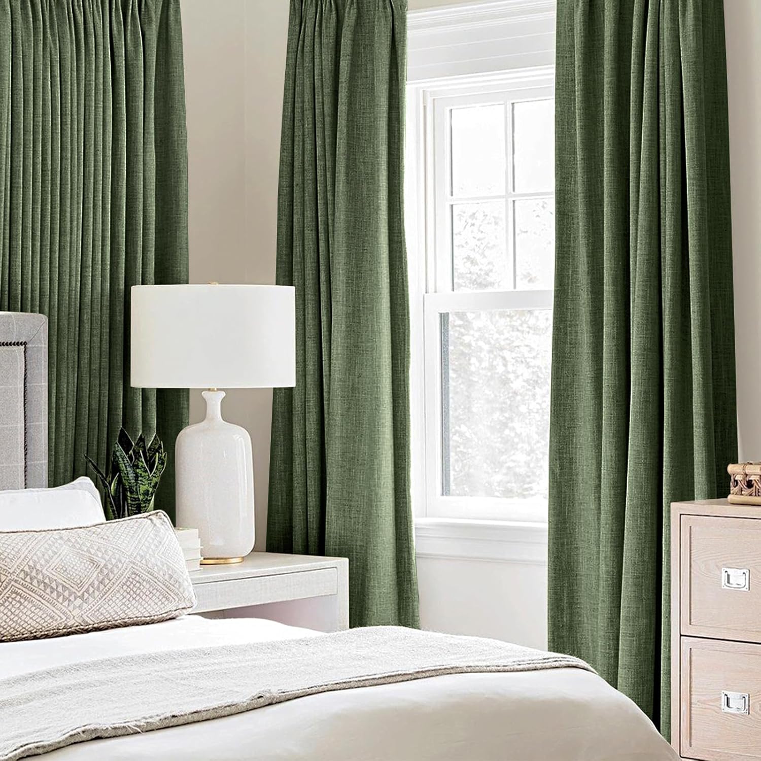 MIULEE 100% Blackout Linen Textured Curtains for Bedroom Solid Thermal Insulated Olive Green Grommet Room Darkening Curtains & Drapes Luxury Decor for Living Room Nursery 52 x 120 Inch (2 Panels)