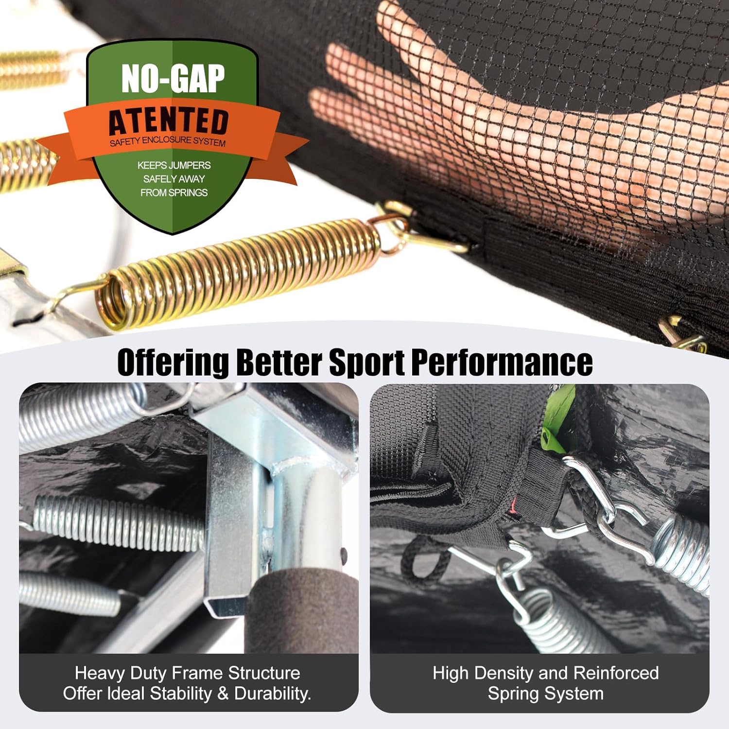 - 【Heavy Duty Frame Structure and Spring System】 The kids trampoline features high-density and reinforced spring system, prioritizing safety and providing a superior bouncing experience with every leap. The heavy-duty zorb pod provides extra stability, preventing the trampoline from tipping over.