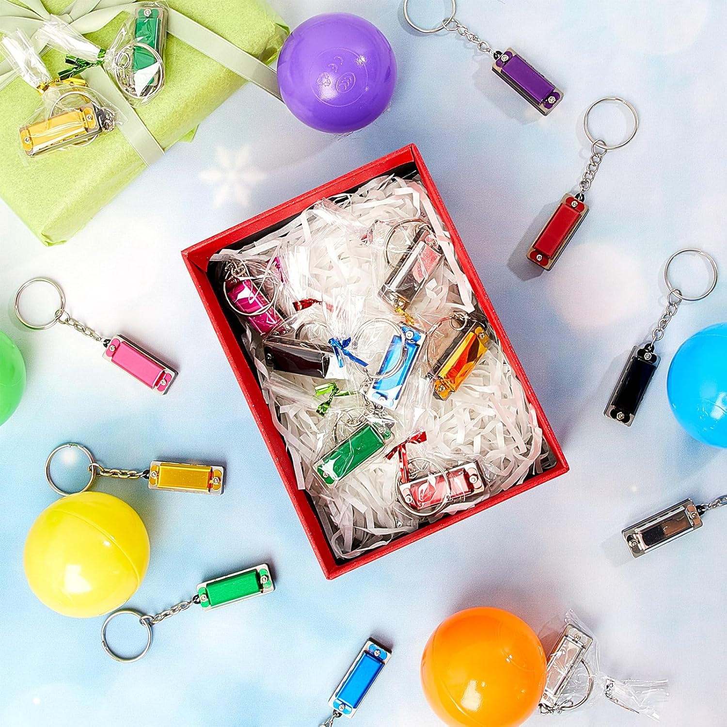 Ecally 32 Pcs Mini Harmonica Keychain for Kids Operation Christmas Favors Portable Wind Instruments 4 Holes 8 Tunes Harmonica Music Party Favors Cute Music Keychain Accessory (Multicolor)