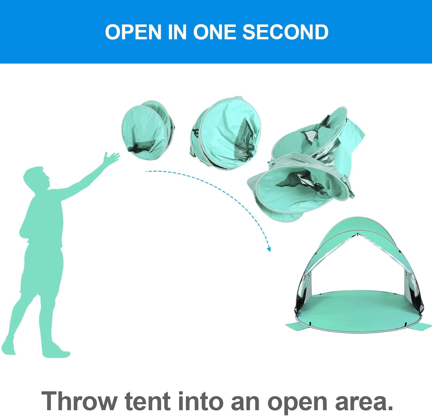 WolfWise UPF 50+ Easy Pop Up 3 Person Beach Tent Sport Umbrella Instant Sun Shelter Tent Sun Shade Canopy, Mint Green