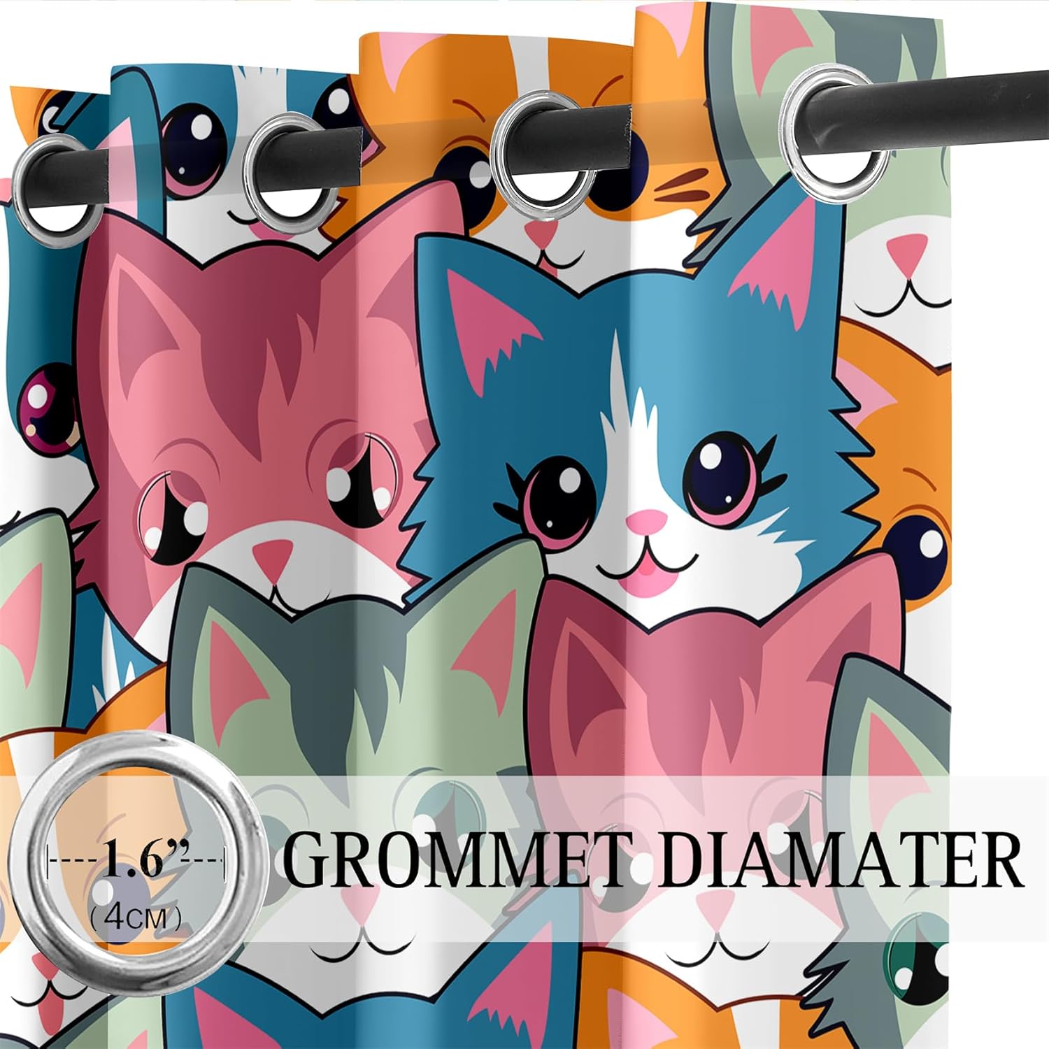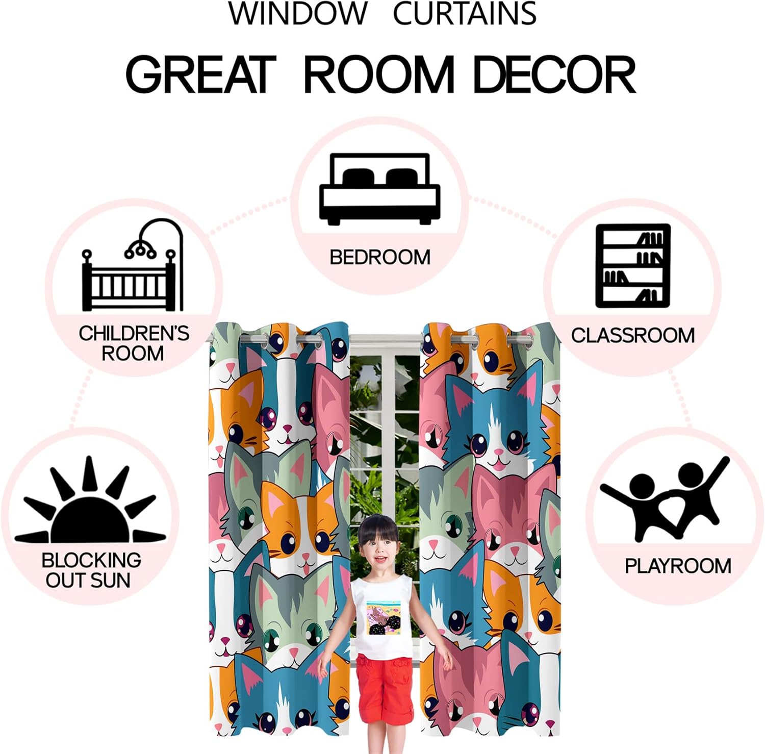Cat Curtain Panels for Girls - 2Pcs Cat Blackout Curtains for Girls Bedroom, 84W x 84L