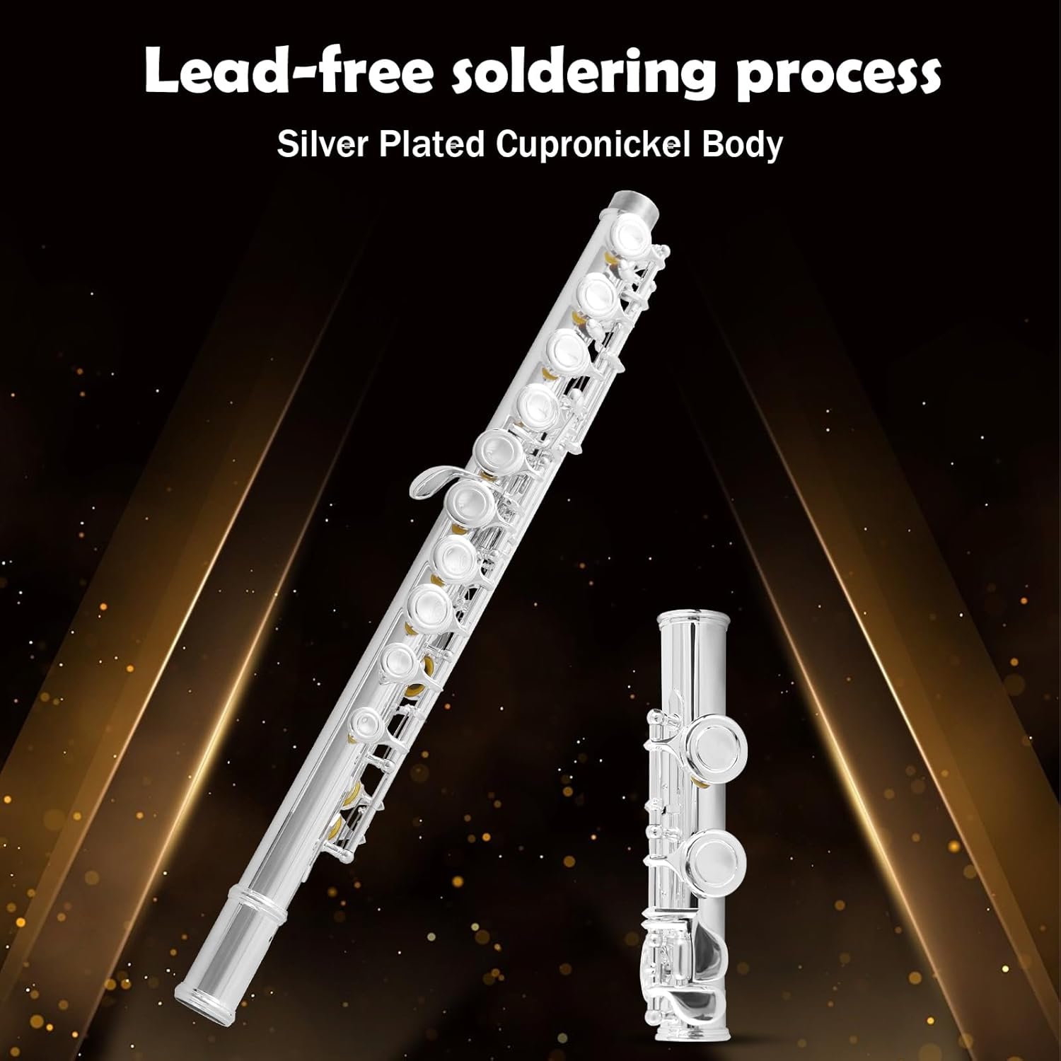 - 【1st STEP to ENJOYING MUSIC】EASTROCK newly improved Series Premium Grade Silver plated C Flute increasingly recognized by schools and folk bands and more chosen for amateur and professional players can be a wonderful gift for beginner,kids,students.