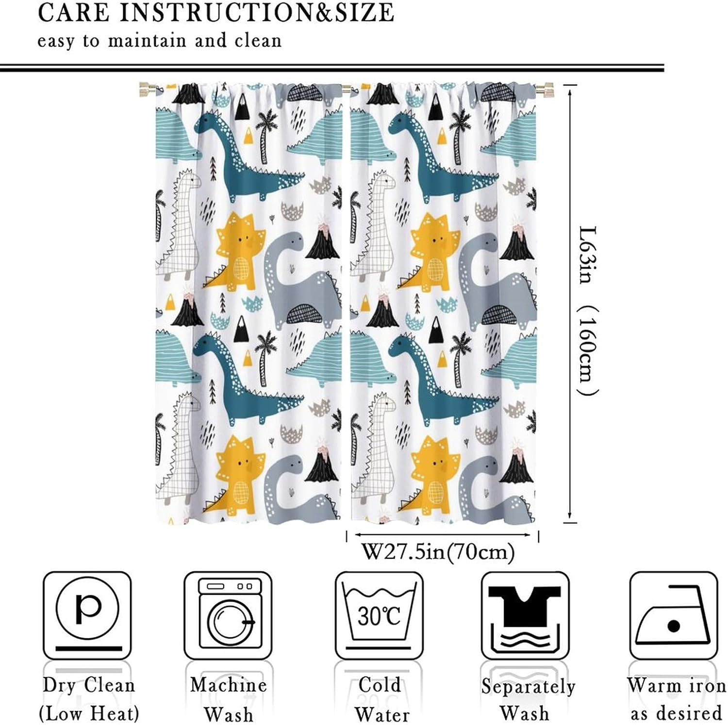 Kids Dinosaur Curtains for Boy Girl Bedroom Decor Cartoon Dino Colorful Cute Funny Wildlife Animal Printed Blackout Rod Pocket Window Drapes for Baby Nursery Playroom Living Room W27.5xL63in 2 Panels