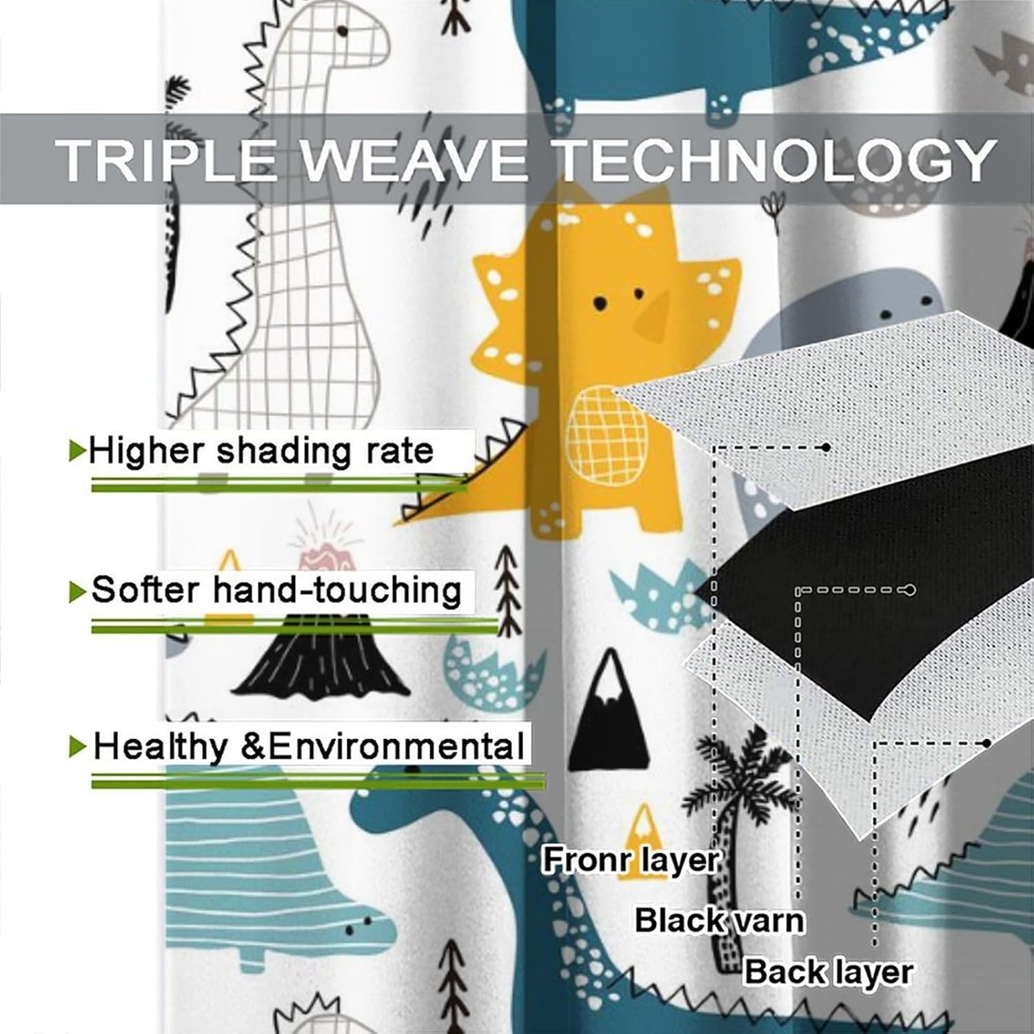Kids Dinosaur Curtains for Boys Girls Bedroom Decor Cartoon Dino Colorful Cute Funny Wildlife Animal Printed Blackout Rod Pocket Window Drapes for Baby Nursery Playroom Living Room W21xL45in 2 Panels