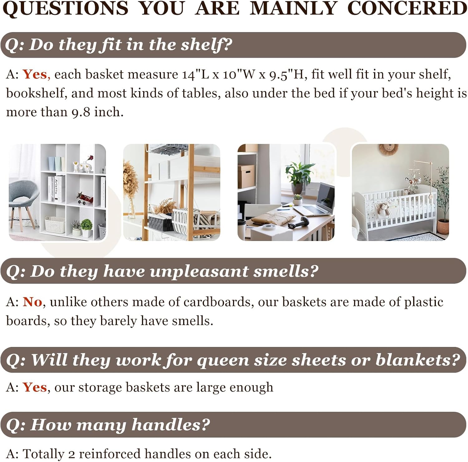 - 【STYLISH & DECORATIVE】 Designed with two tones, adorned with 2 brown handles, Not only serve as fabric storage bins, but a statement piece that reflects your discerning taste and pursuit of quality life. Bring a sense of order and refinement and a touch of warmth to your living room, bedroom, bathroom, office, nursery room, laundry room and more.