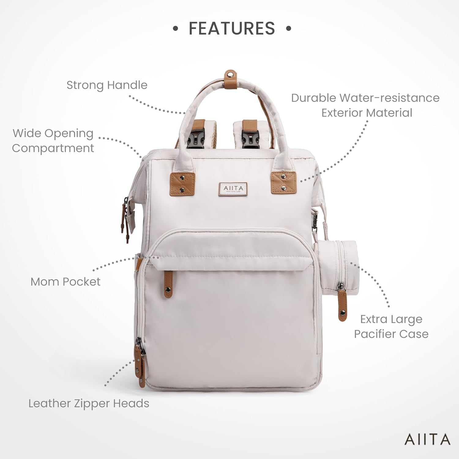 - Travel-ready and Gift-worthy: The AIITA diaper bag boasts a lightweight design with wide, soft padded shoulder straps for support, comfort, and protection. Whether you're off to the park or on a journey, it's your go-to for organizing baby essentials. Featuring special straps for easy attachment to strollers or luggage, it enhances travel with efficiency. It's also perfect as a baby shower gift for new parents.