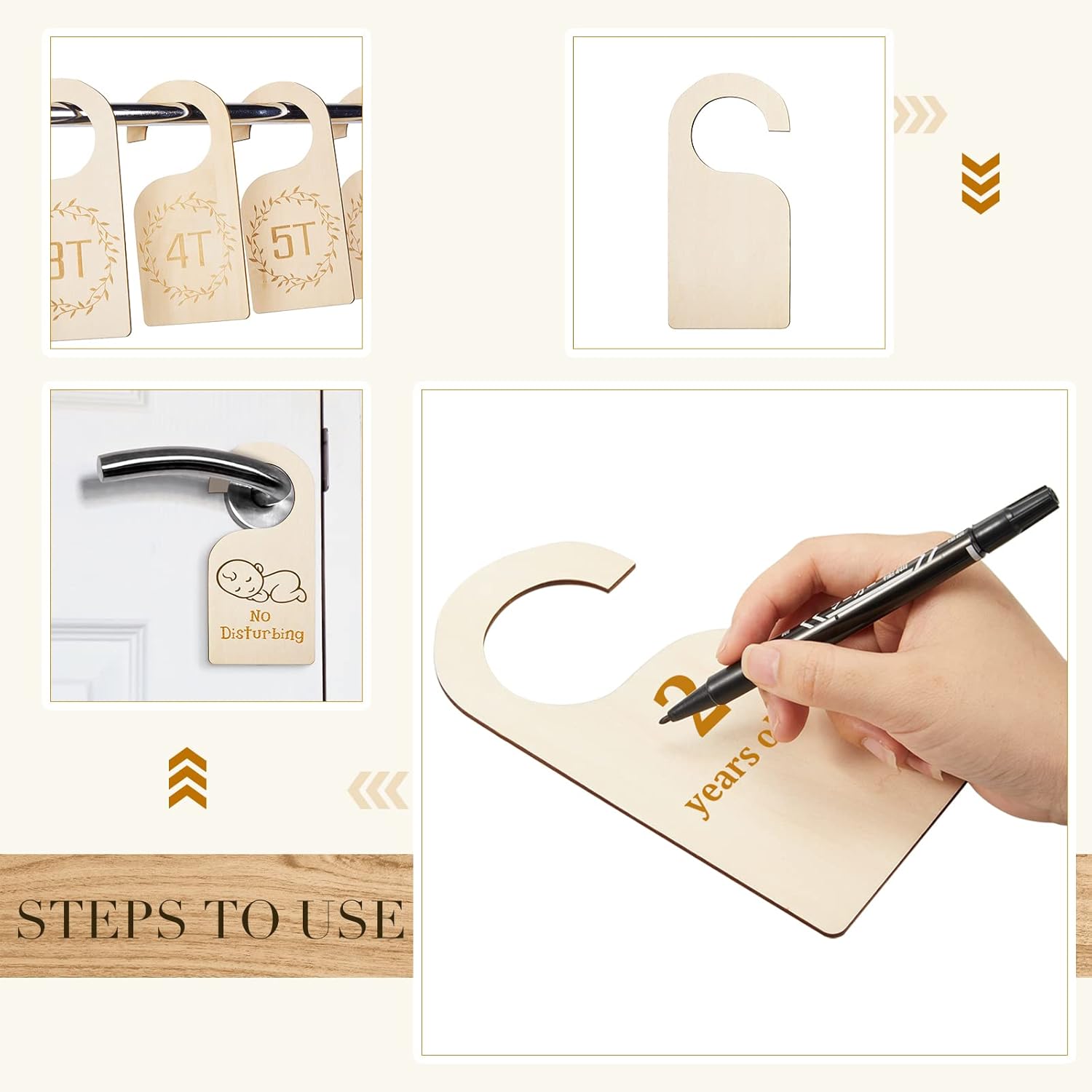 Patelai 50 Pieces Blank Wooden Clothing Rack Divider Closet Blank Organizers Hanger Separators Hanging Closet Divider with Marker Pen for Home Nursery Clothes