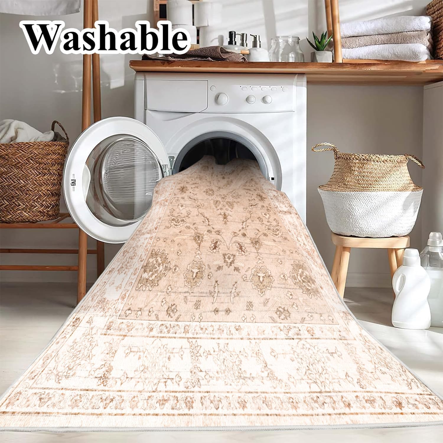 4x6 Vintage Washable Thin Area Rug Tangerine Traditional Floor Cover Foldable Indoor Distressed Non Slip Carpet Floral Print Mat Bedroom Living Room Bathroom