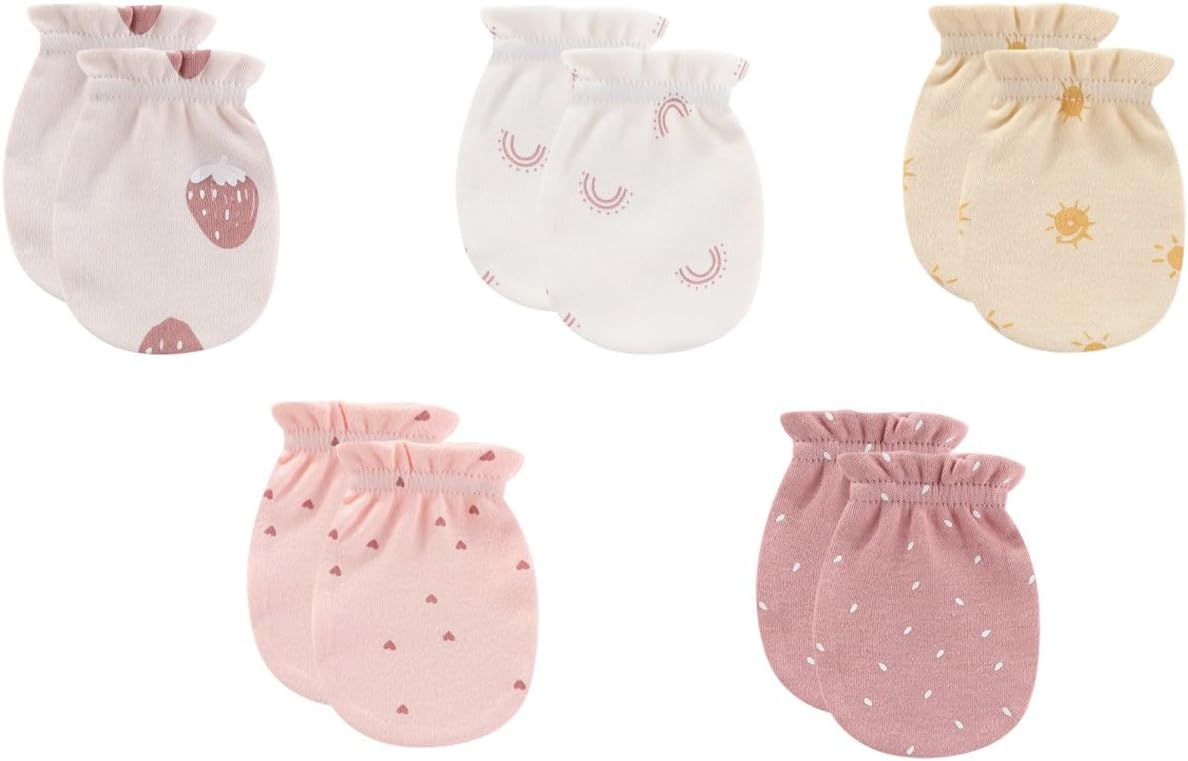 - Package:This unisex sets all the clothes and accessories you need for a new born baby boy girl.It includes 5 short sleeve bodysuits,5 pack of pants,5 hats,5 pairs of mitten
