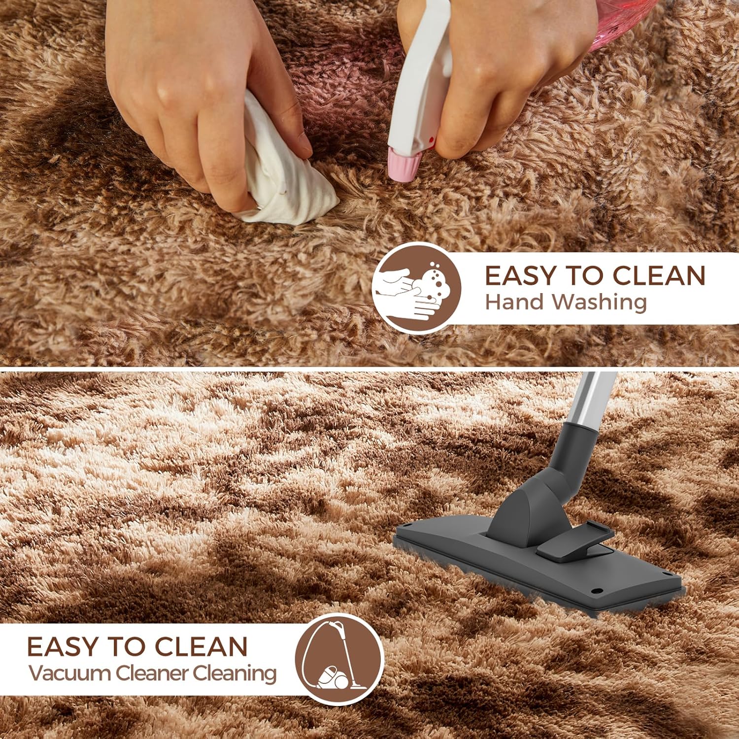 Ultra Soft Rug for Living Room, 9X12 Fluffy Shag Area Rug for Bedroom, Modern Shaggy Carpets Fuzzy Rug for Teens Dorm Nursery Home Decor Aesthetic, Upgrade Anti-Skid Durable, Tie-Dyed Coffee