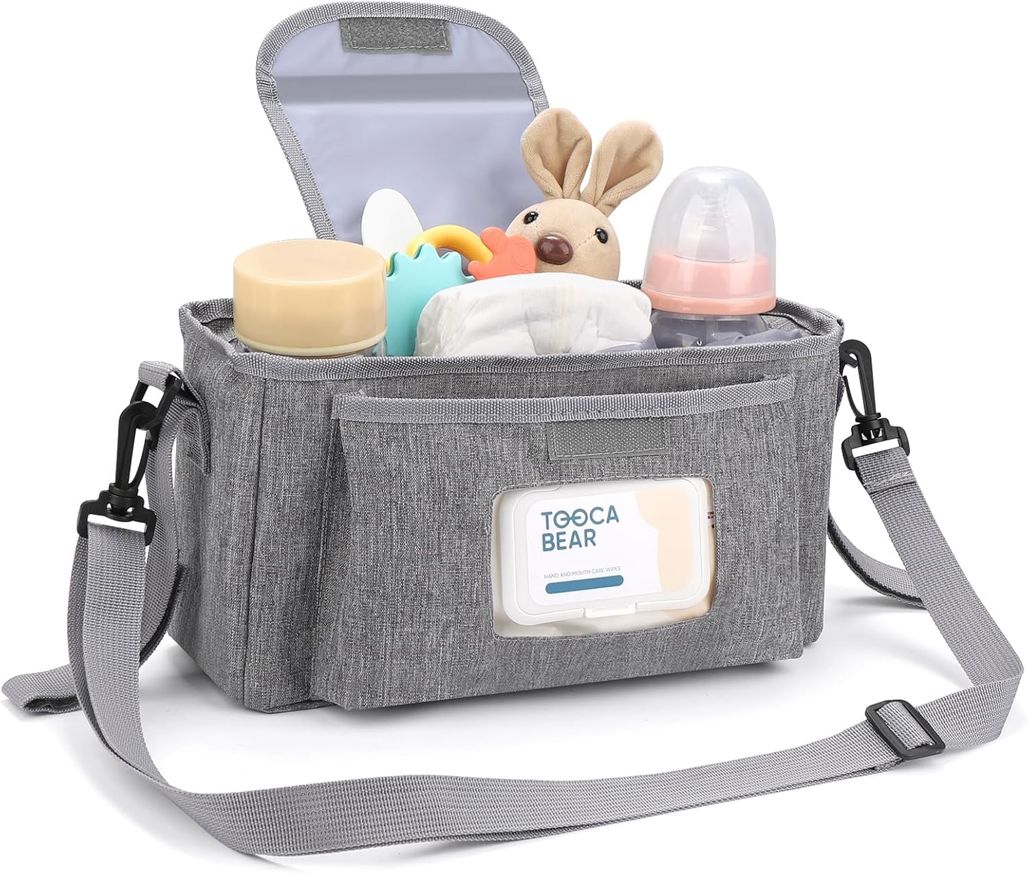- Multiple Usage Methods : It can be hung as a stroller cup holder organizer on the stroller. When you don't need to use a stroller, you can also install the accompanying strap and carry this organizer bag for easy outing.