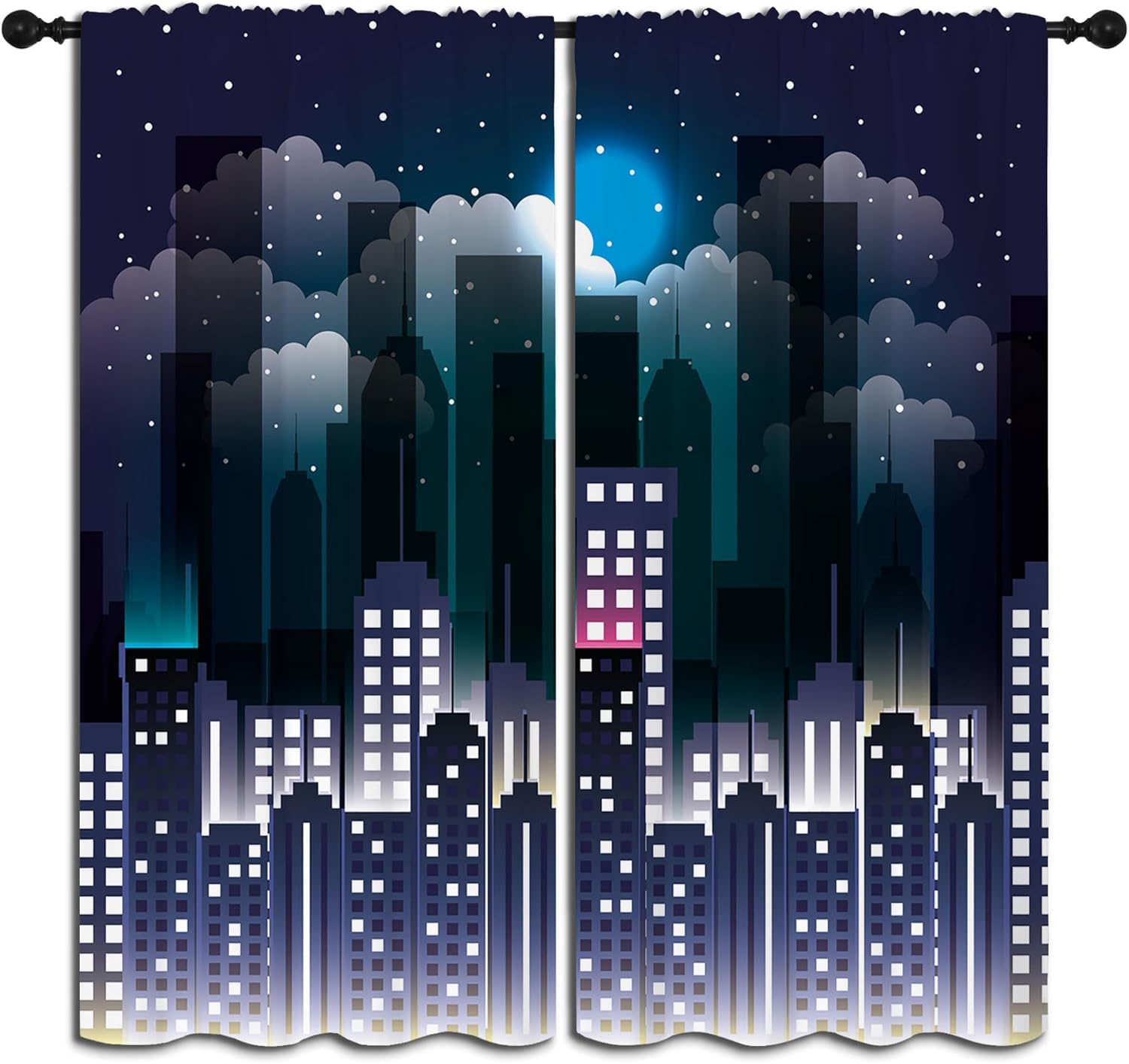 - ✿【Fashion Design】: Elevate your room decor with these Superhero theme printed decorative curtains featuring Violet Night Sky Buildings Cityscape Design. They're for any room.