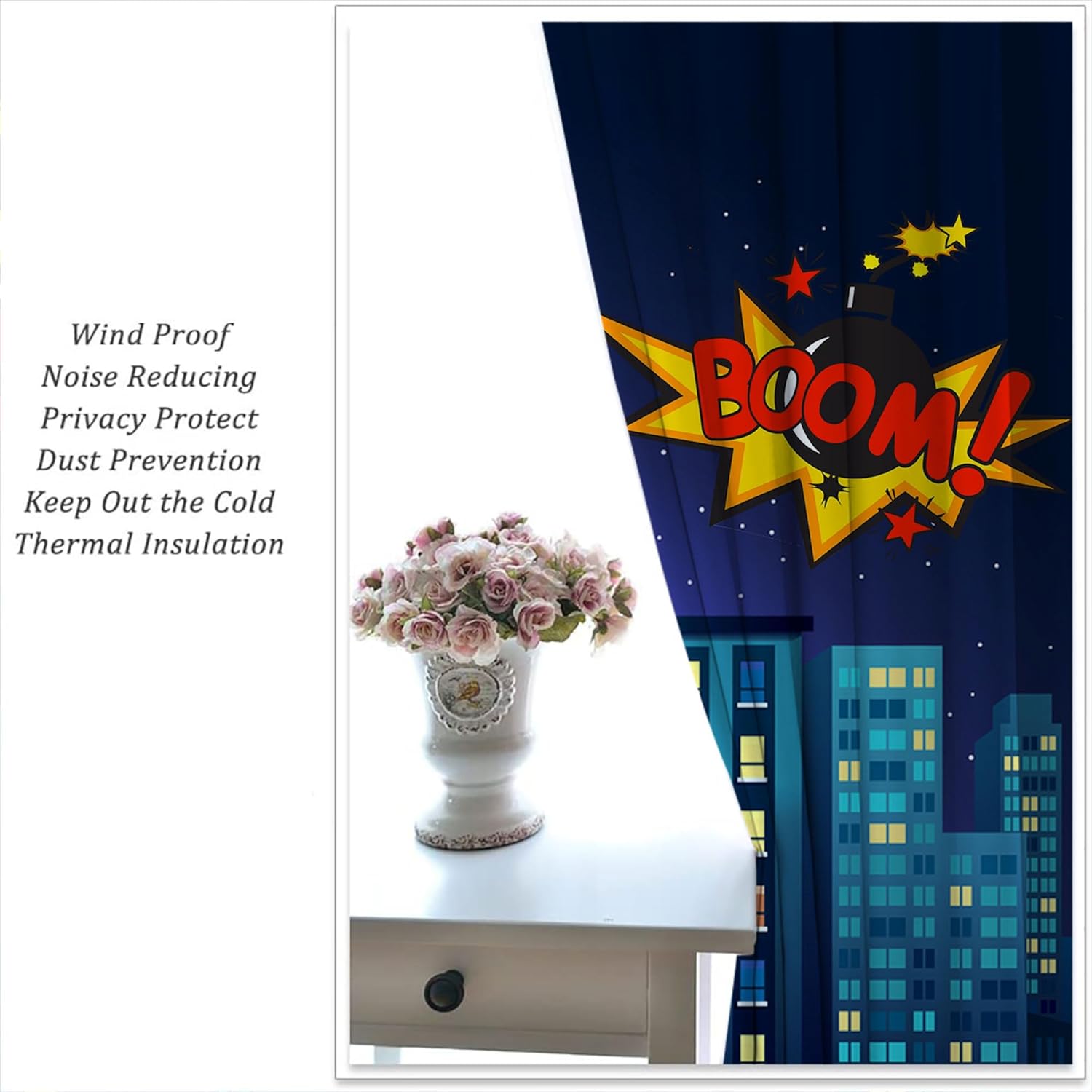 - ✿【Fashion Design】: Elevate your room decor with these Superhero theme printed decorative curtains featuring Cartoon Skyline Buildings Cityscape Design. They're for any room.