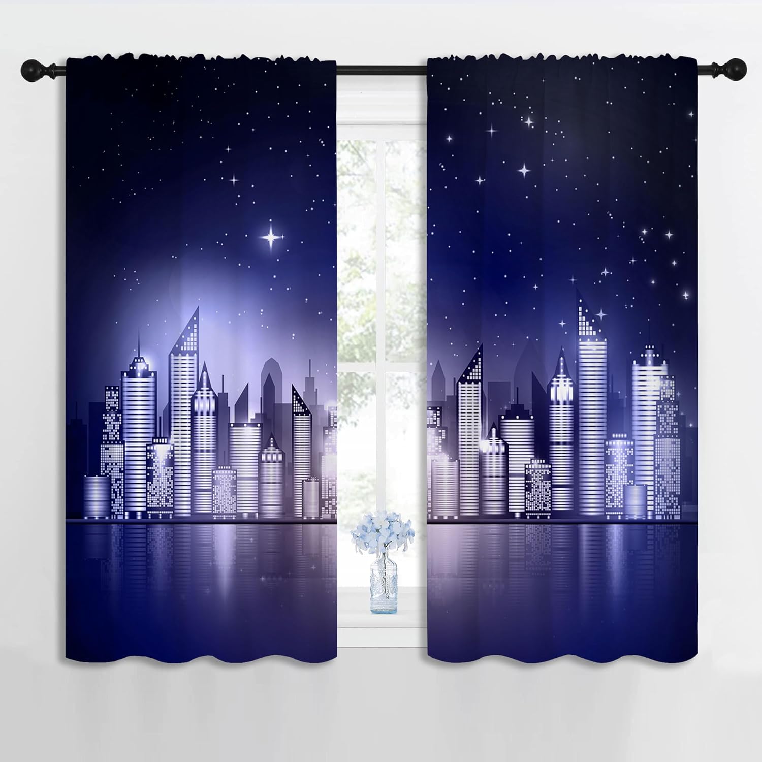 - ✿【Fashion Design】: Elevate your room decor with these City theme printed decorative curtains featuring New York Skyline Modern City Starry Sky Night View Design. They're for any room.