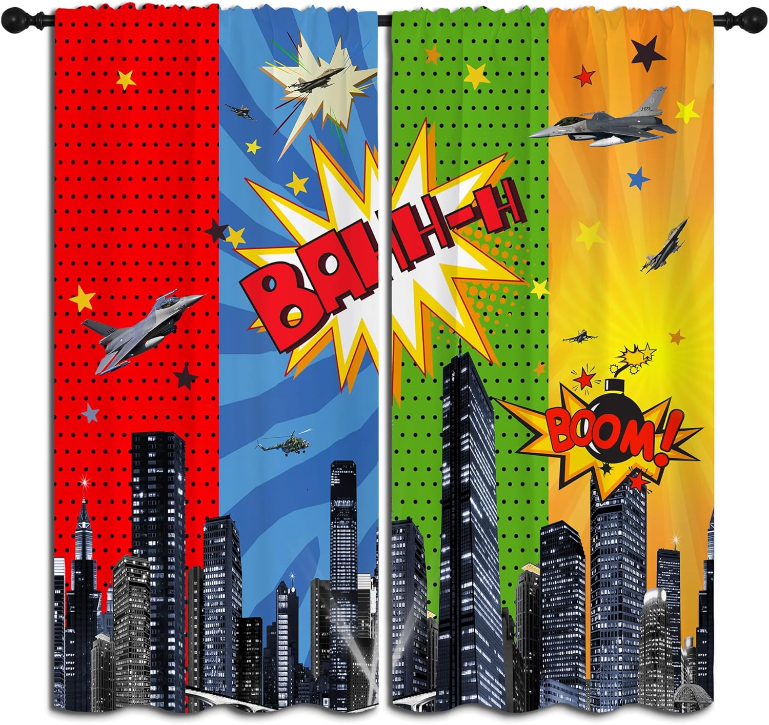 - ✿【Fashion Design】: Elevate your room decor with these Superhero theme printed decorative curtains featuring City War Explosion comics Art Design. They're for any room.