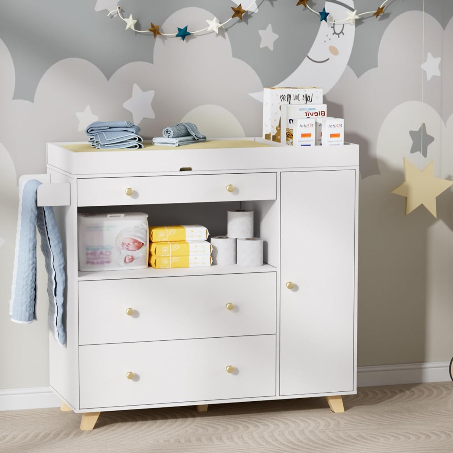 - Clever & Modern Design: Our changing table can be used to change diapers, massage and more. Three roomy drawers provide plenty of room for all item, blankets and more. Open shelf are convenient to store small everyday items. One clever design shelves cabinet Keep all items clean and tidy from dust. It can also be used as a dresser.