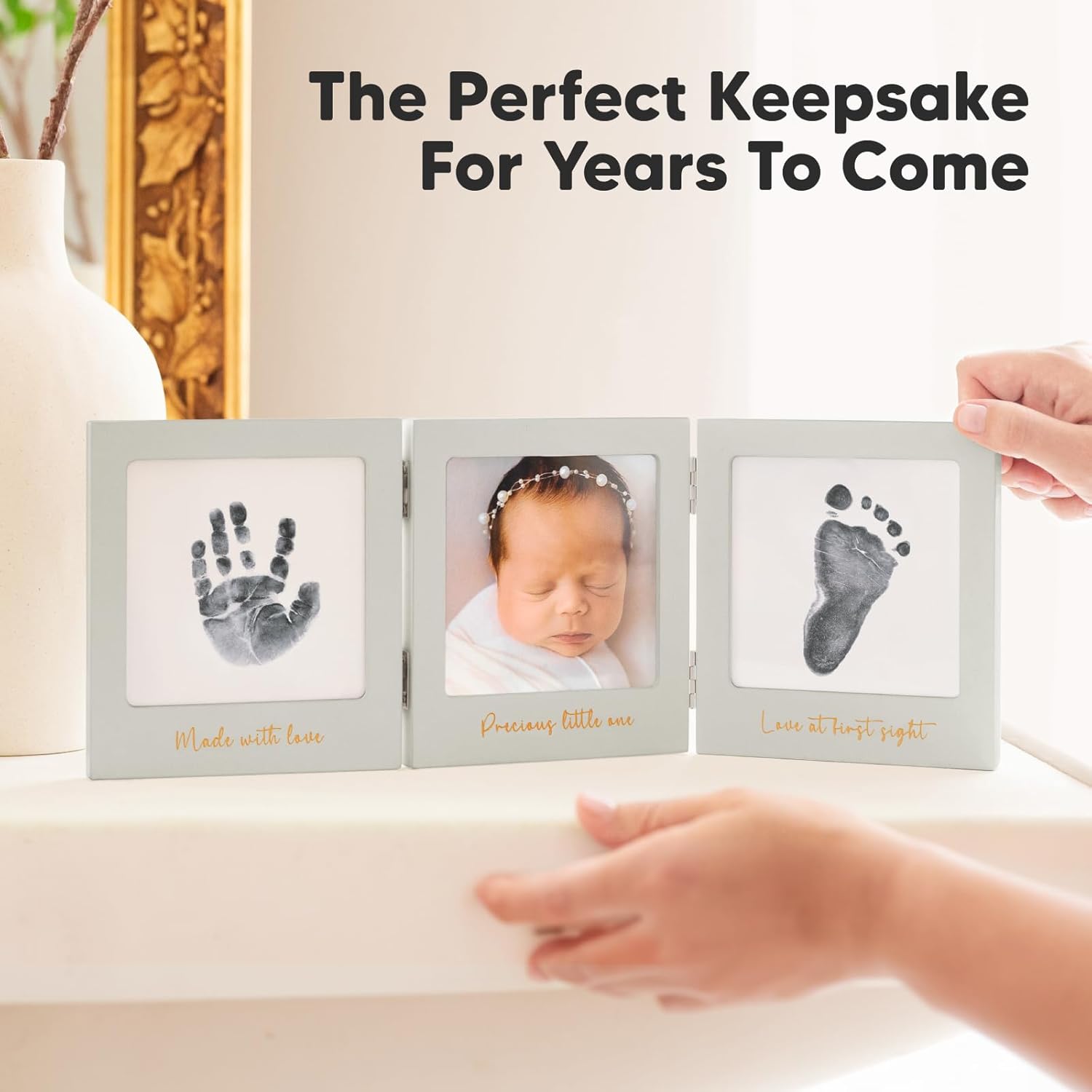 Inkless Baby Handprint and Footprint Kit for Newborn - Baby Footprint Kit, Newborn Keepsake Nursery Picture Frame,Dog Paw Print Maker,Personalized Gifts for New Mom,Showers & Registry(Cloud Gray/Gold)