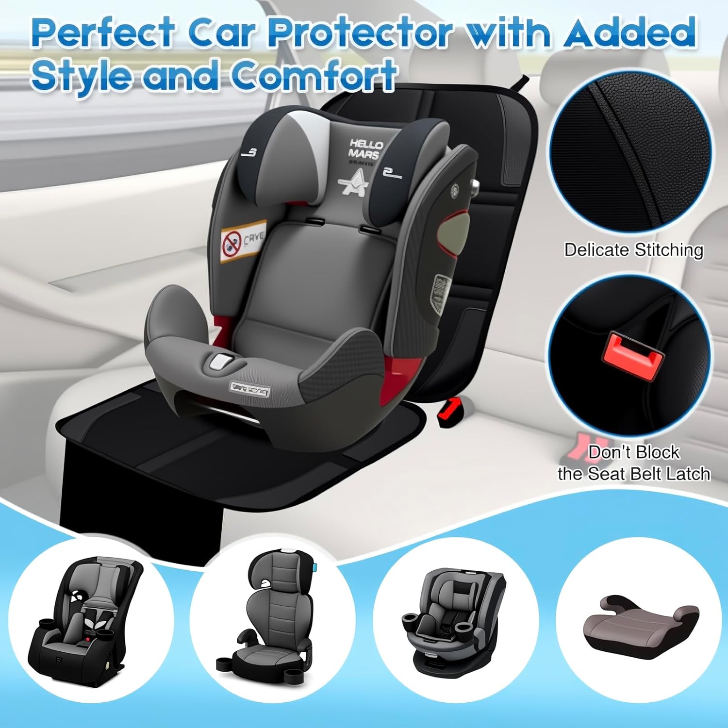 - Car seat protector covers for baby carseat made of waterproof durable 600D polyester with thick padding. Baby car seat cover can protects the back seat of the car from wear and tear of the child seat, make us comfortable while traveling