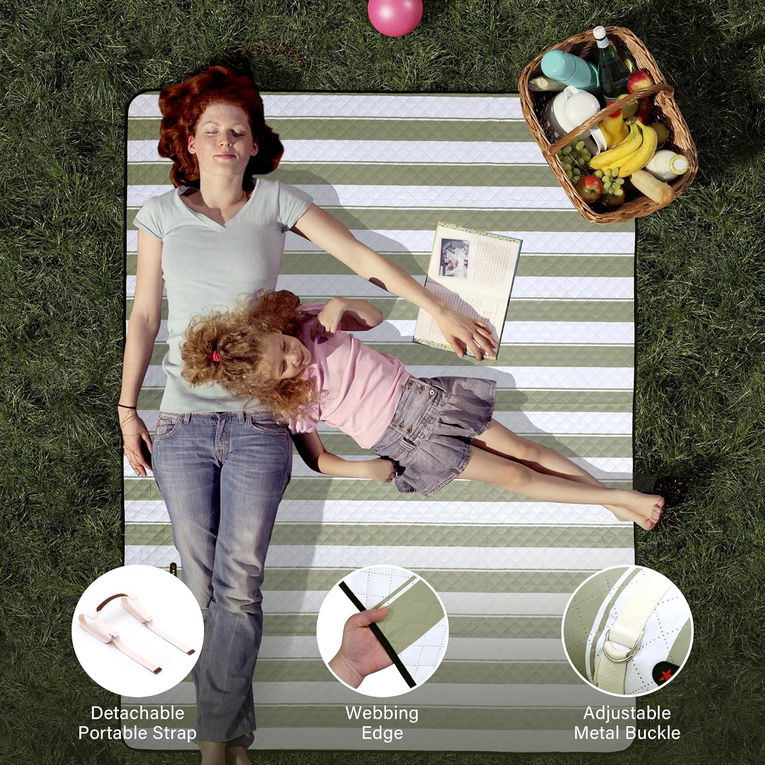 HX&OD Outdoor Picnic Blanket Extra Large, 80”x60” Waterproof Picnic Mat Foldable Camping Blanket Portable with Carry Strap for Beach Mat (Green)