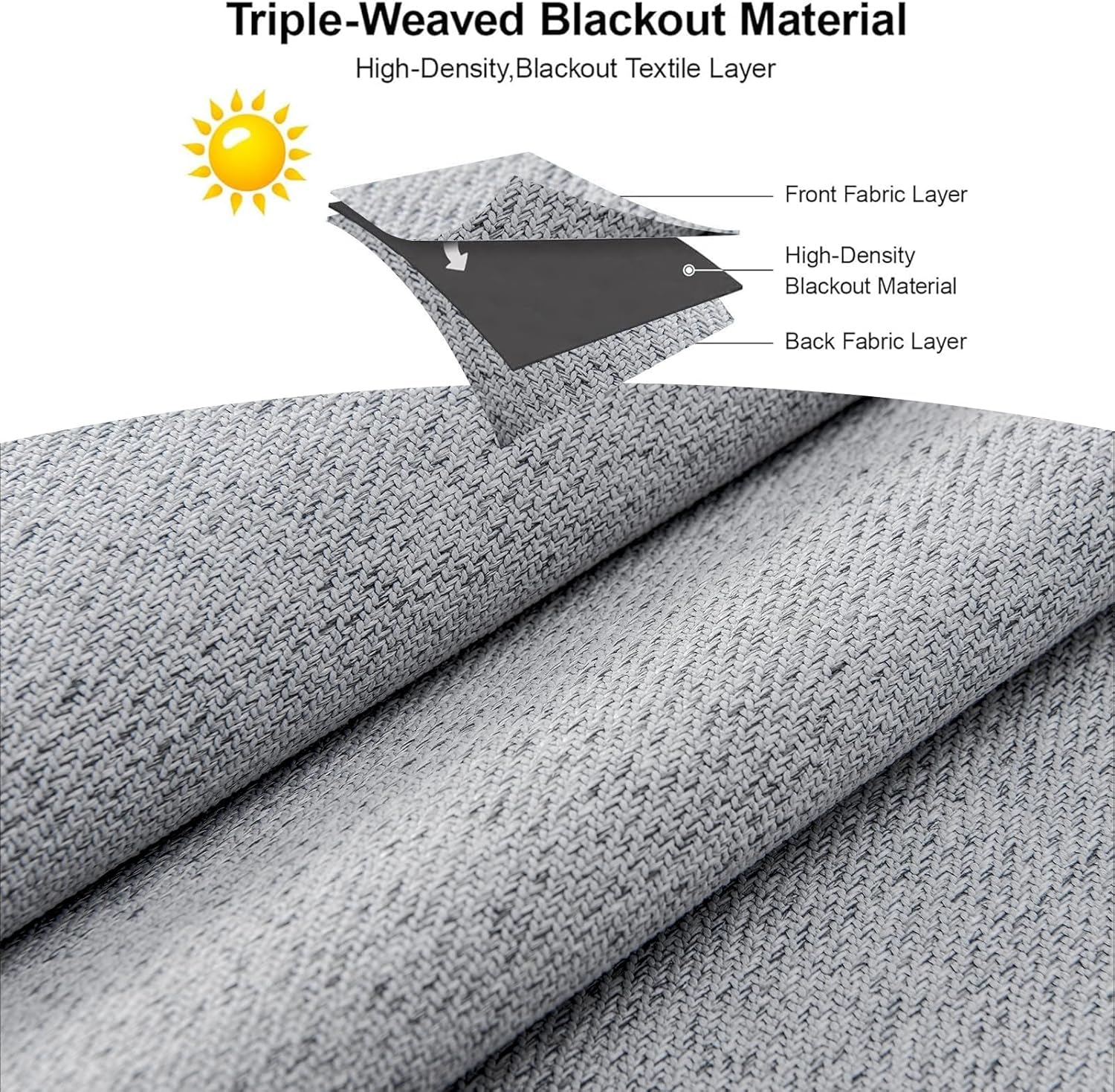 Joydeco Faux Linen Blackout Curtains for Bedroom,Light Grey Blackout Curtains 108 inches long,100% Blackout Solid Thermal Insulated Window Drapes Luxury Decor for Living Room(W52xL108 Inch,Light Grey)
