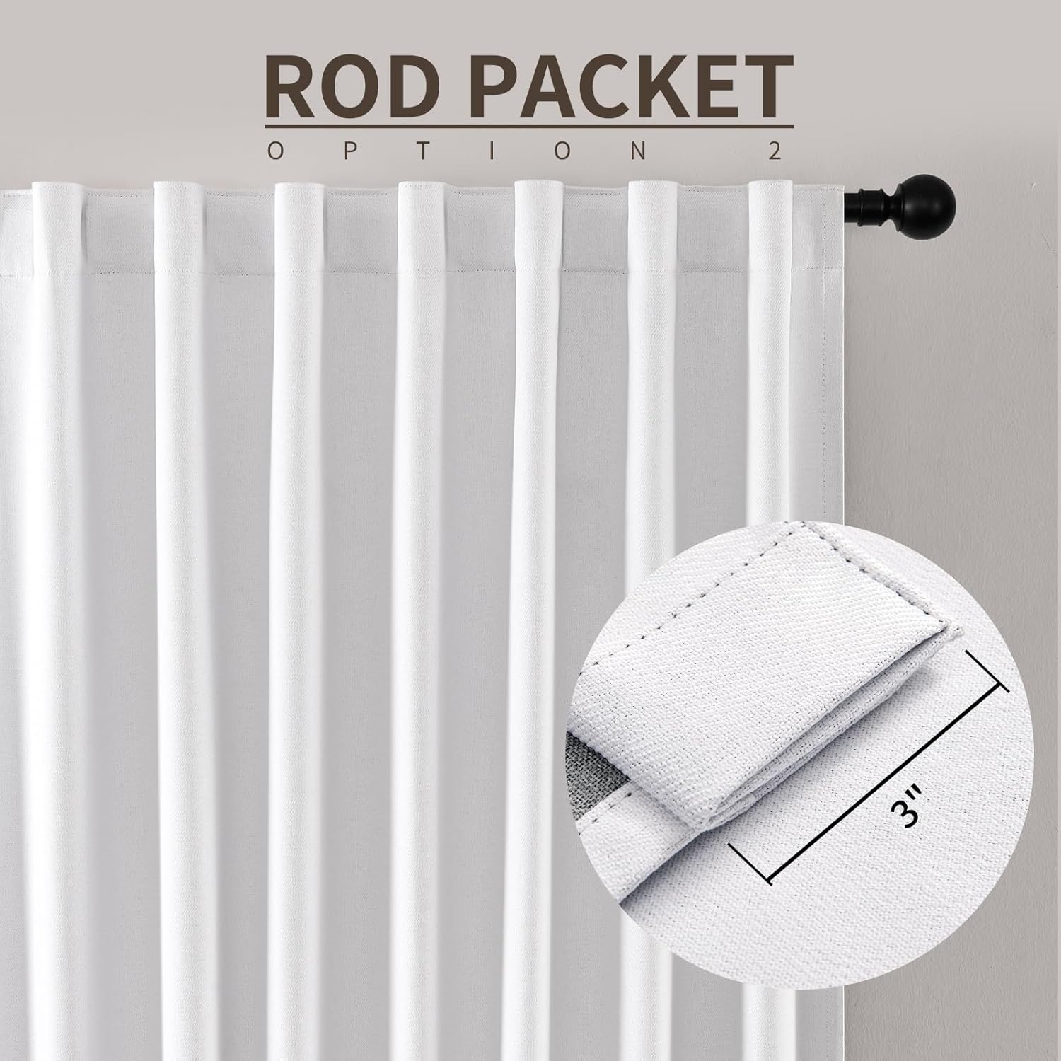 Joydeco Faux Linen Blackout Curtains for Bedroom,White Blackout Curtains 120 inches Long,100% Blackout Solid Thermal Insulated Window Drapes Luxury Decor for Living Room(W52xL120 Inch,White)
