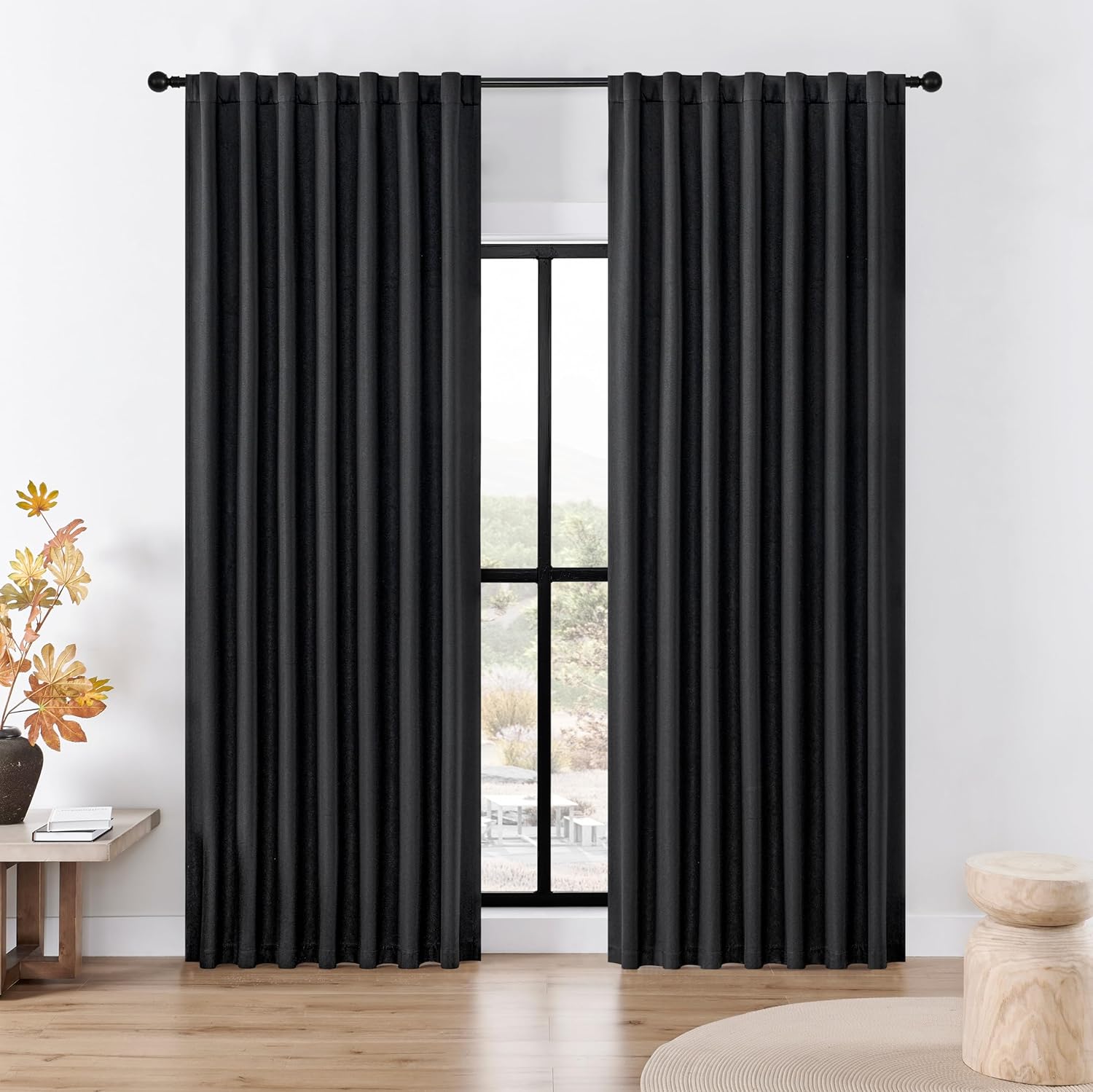 Joydeco Faux Linen Blackout Curtains for Bedroom,Black Blackout Curtains 90 inches Long,100% Blackout Solid Thermal Insulated Window Drapes Luxury Decor for Living Room(W52xL90 Inch,Black)