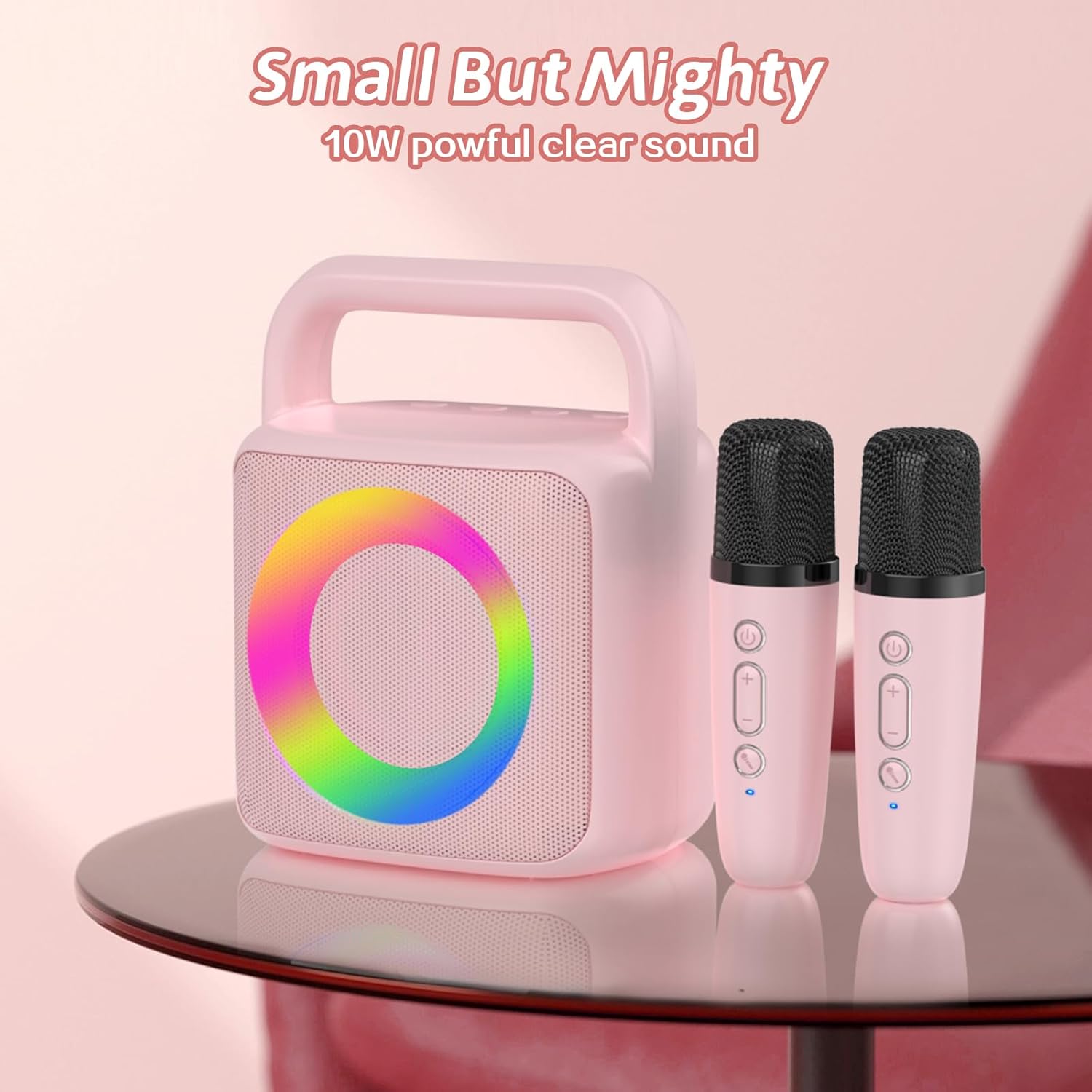 Karoke Machine with 2 Wireless Mics,Portable Karaoke Microphone Toys with Colorful Lights and Magic Voices for Camping Party, Birthday Gift for Boys Girls Teenages Adults