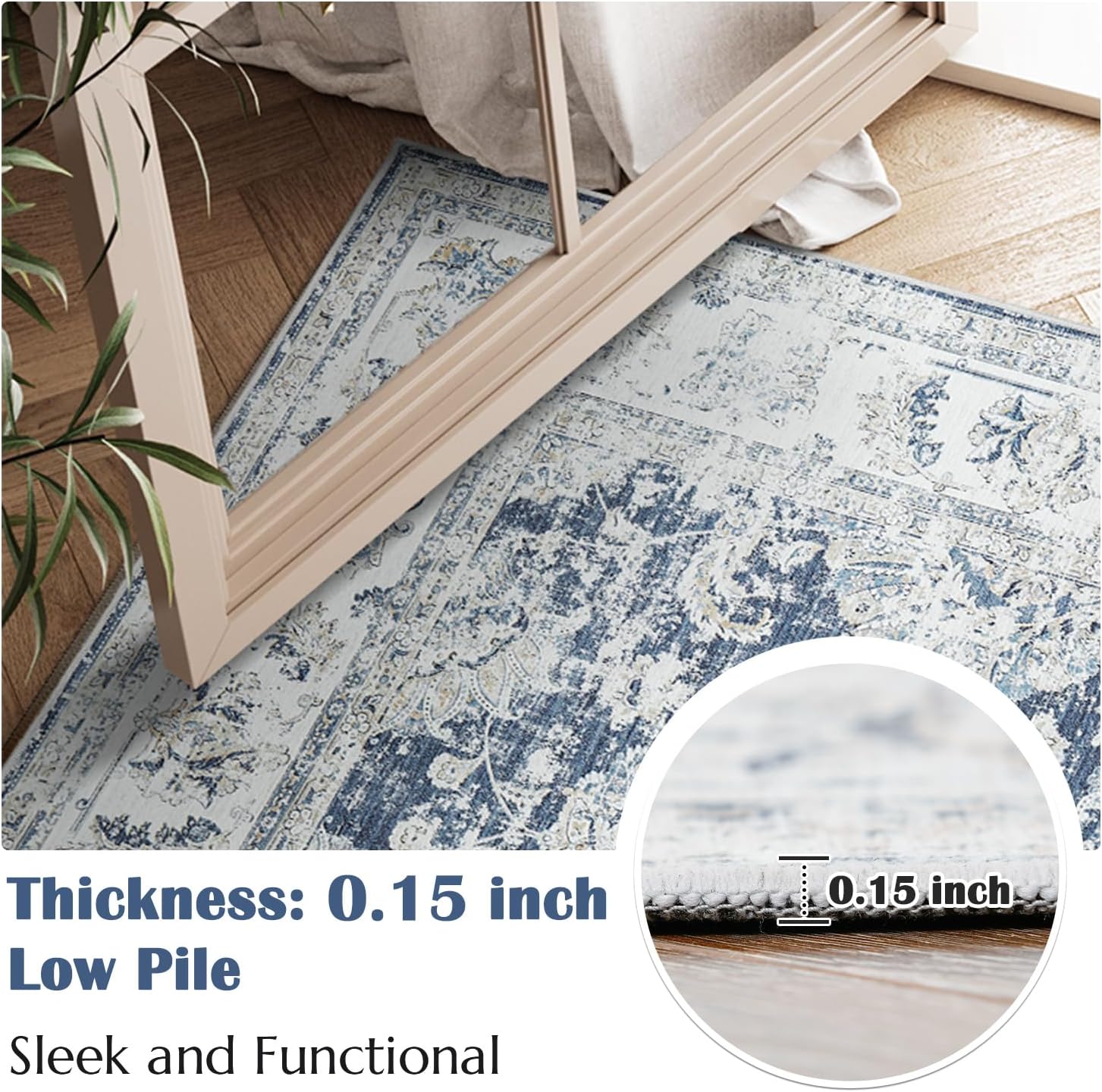 - Slim, Secure & Floor-Friendly: At just 1/8″ thick, this lightweight rug slips easily under doors and furniture while its built-in non-slip backing keeps it firmly in place. Perfect for high-traffic areas, it offers style and stability without bulk.