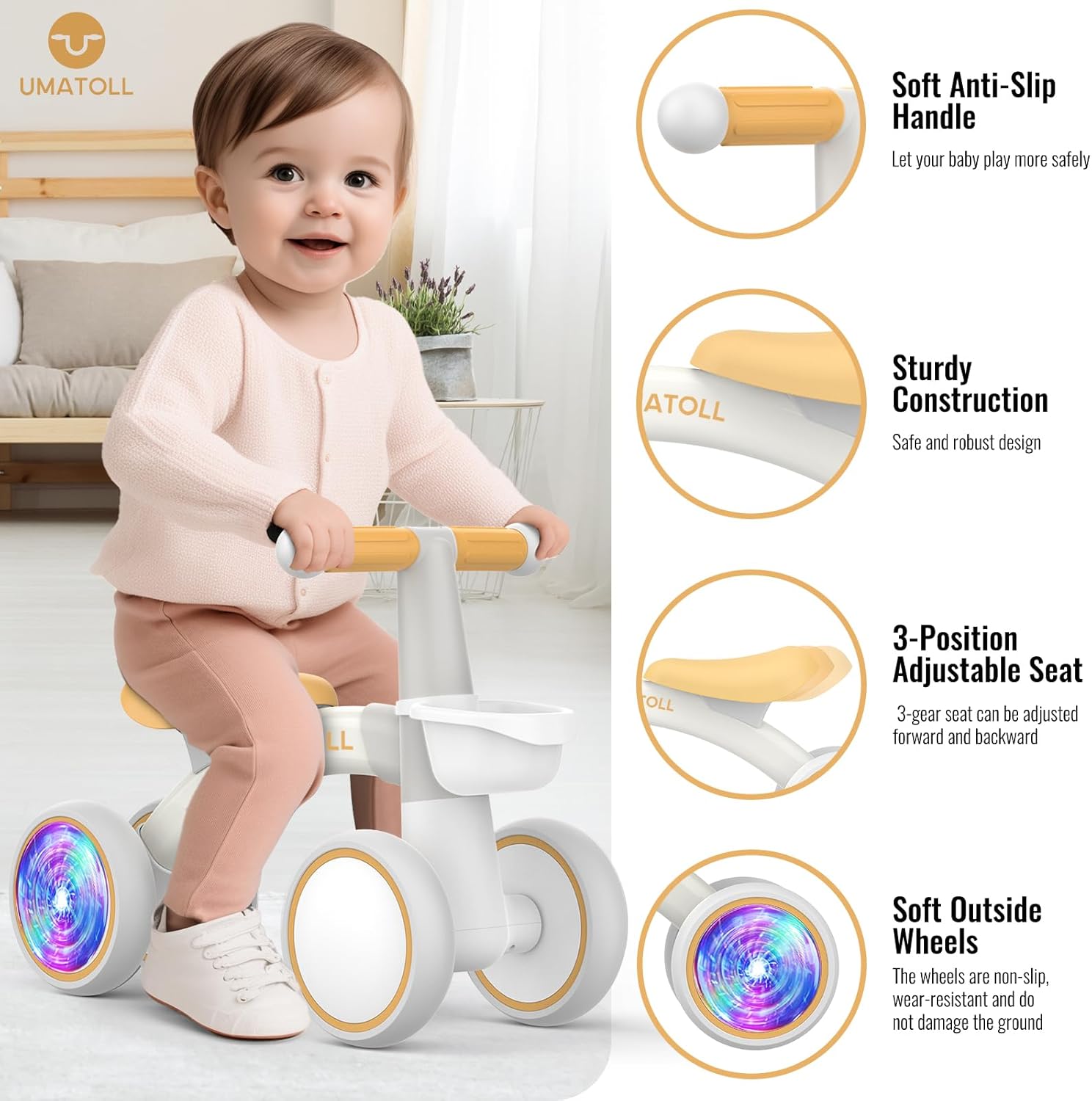 Umatoll Colorful Lighting Baby Balance Bike Toys for 1 Year Old Boys Gifts, Adjustable Seat Baby Walker, One Year Old Boy Birthday Gifts, 12-24 Months Toddler First Ride on Toys
