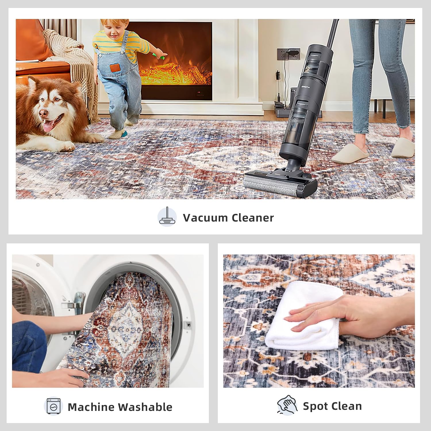 - [Non-Slip Backing]: The large area rug is made of snowflake-shaped TPE non-slip rubber backing takes more safety. The non slip rug is deal for everyday indoor locations where kids or pets are active.