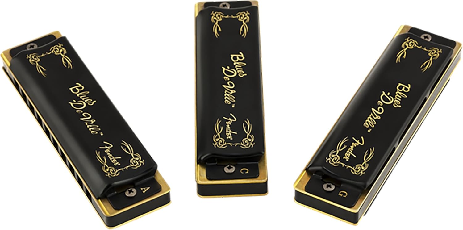 Fender Blues DeVille Harmonica - 3 Pack Bundle with Case, Austin Bazaar Instructional Manual, and Polishing Cloth