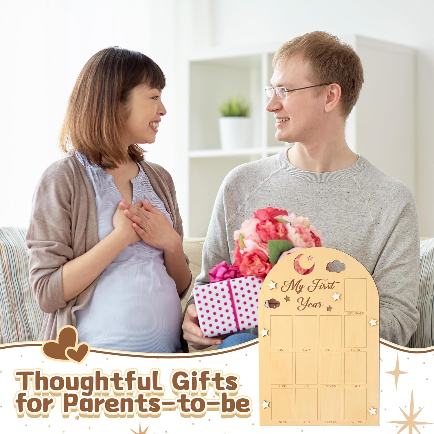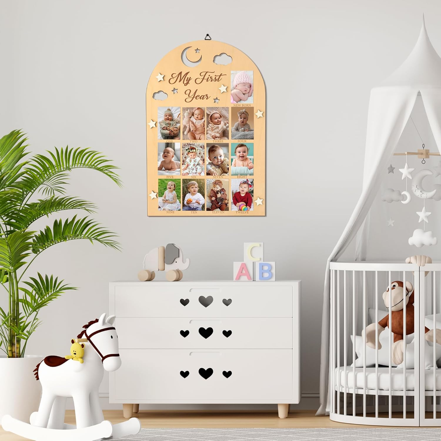 - Thoughtful Gift: Give this baby photo wooden board to new parents as an ideal gift choice for a baby shower, baby boy girl first year party, birthday party, Christmas and various other occasions. Decorate your nursery or baby's birthday party with a priceless piece of their first year.