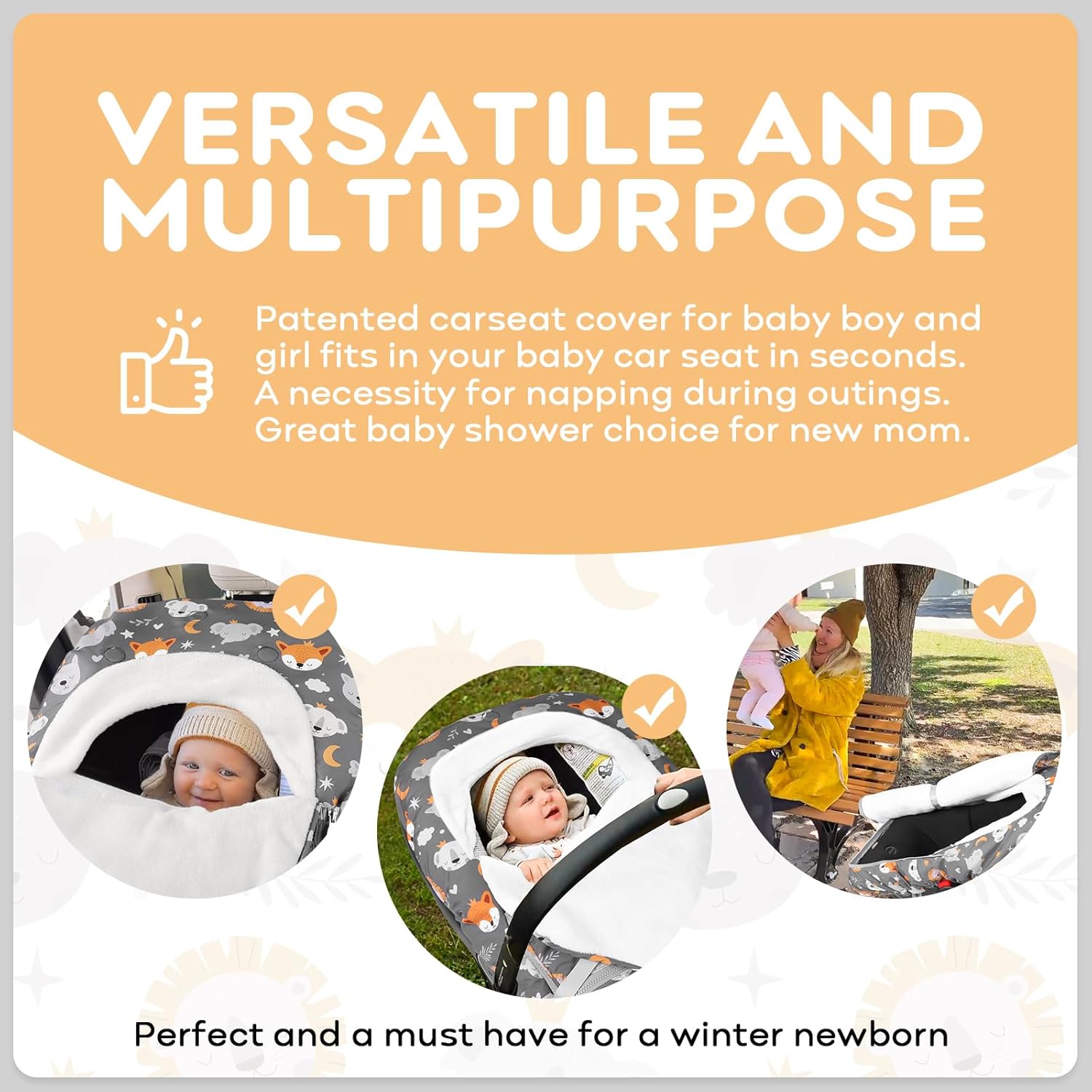 - Perfect Choice for Baby Shower: Patented winter carseat covers for baby boy and girl fits in your baby car seat in seconds. A necessity for napping during outings. Great baby shower choice for new mom.