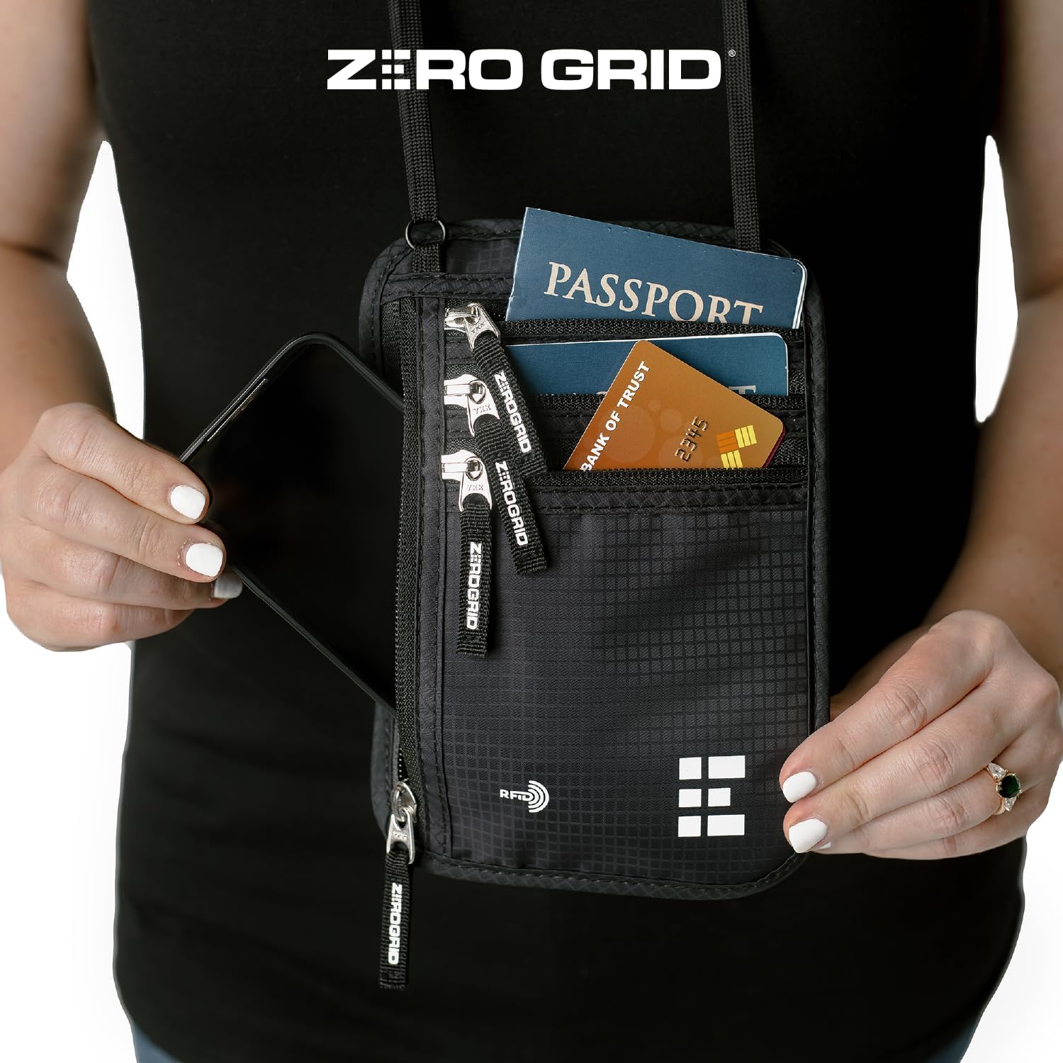 - Protect Your Personal Data: Equipped with advanced RFID blocking technology, this travel pouch shields your sensitive information from digital theft. Keep your credit cards, passports, and personal data secure from electronic pickpockets, so you can travel with confidence.